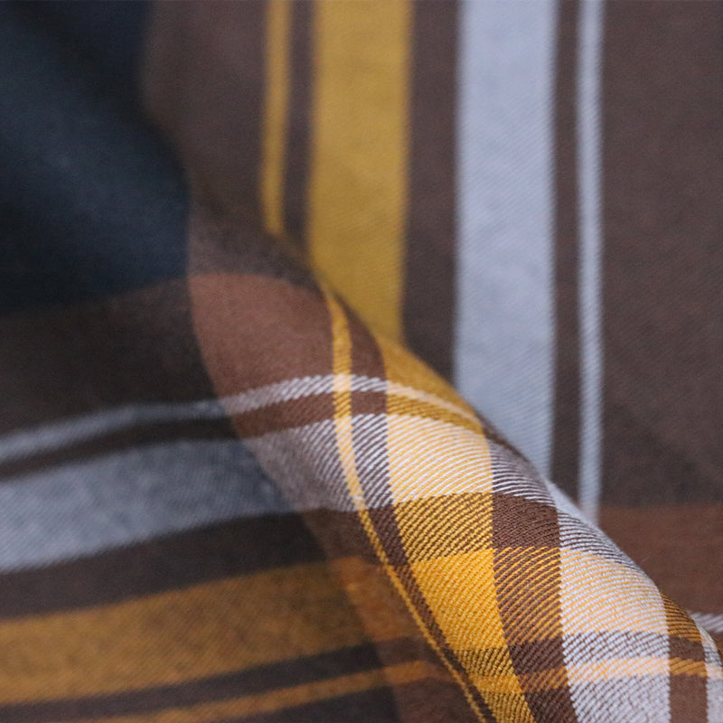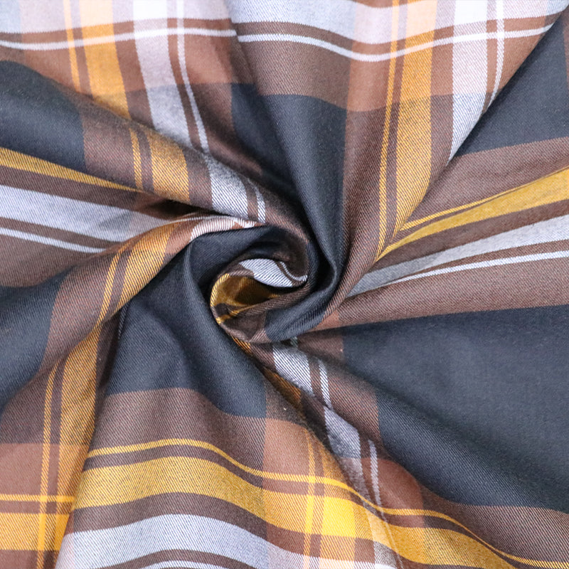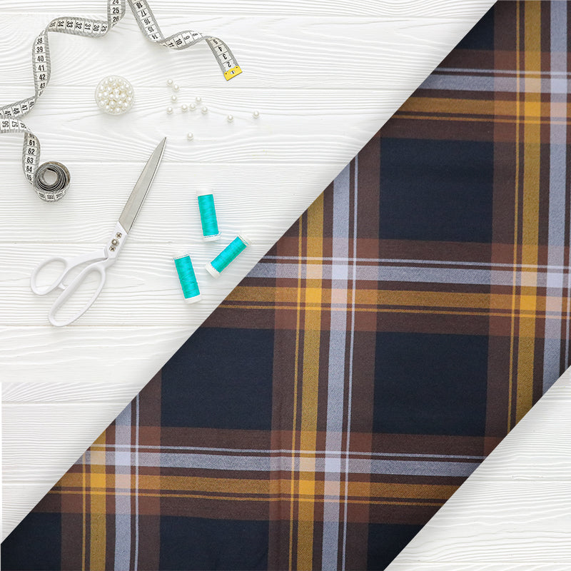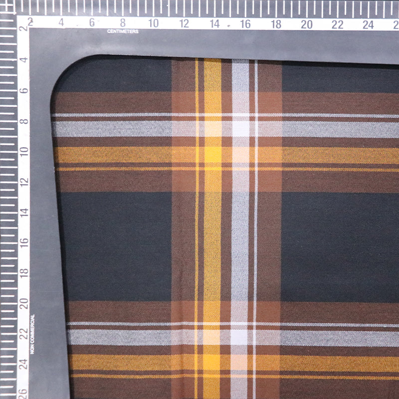 Black And Yellow Checks Pattern Screen Print Cotton Lycra Fabric