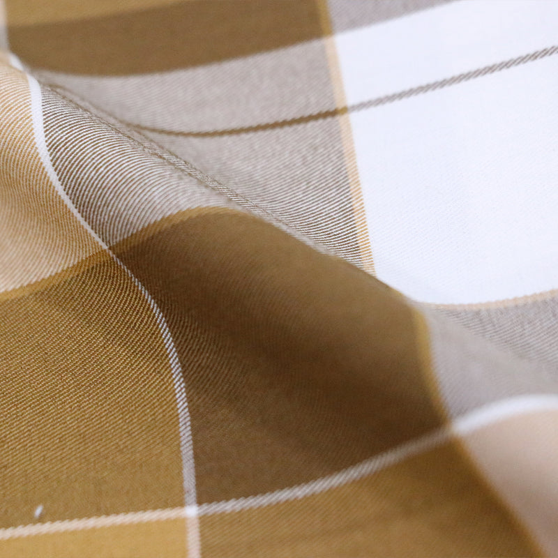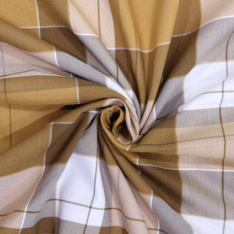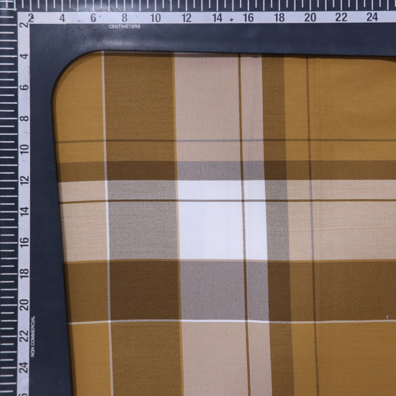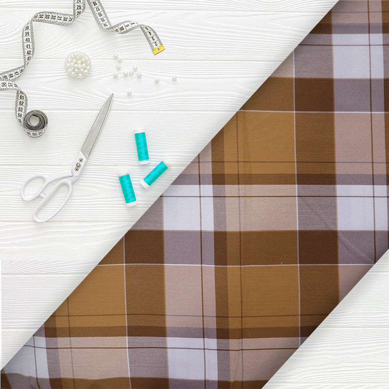 Dark Beige And Brown Checks Pattern Yarn Dyed Cotton Lycra Fabric