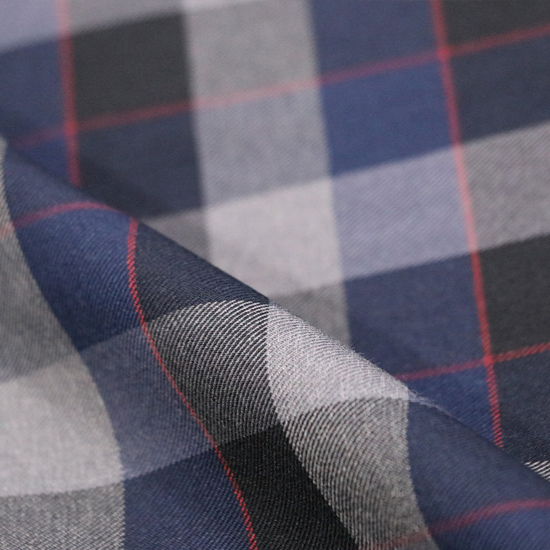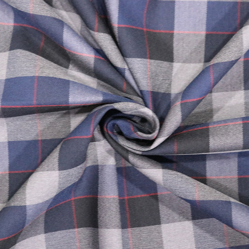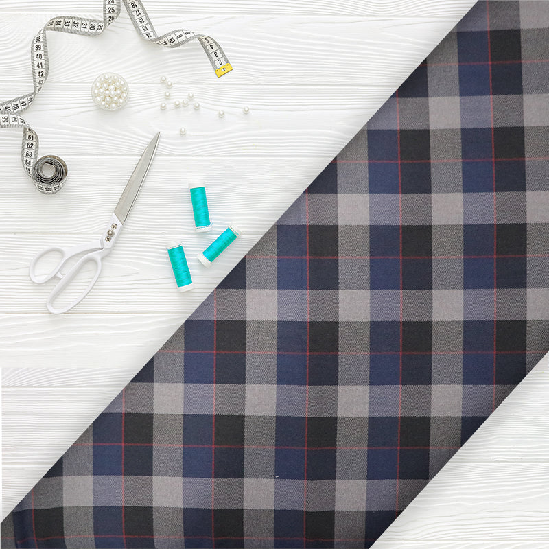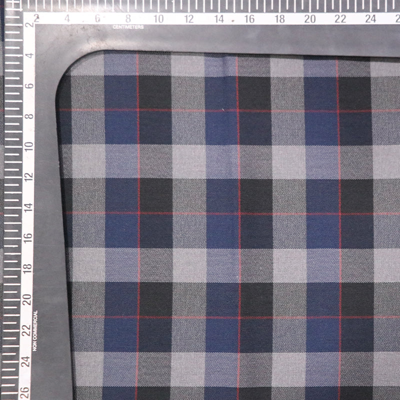 Navy Blue And Black Checks Pattern Yarn Dyed Cotton Lycra Fabric