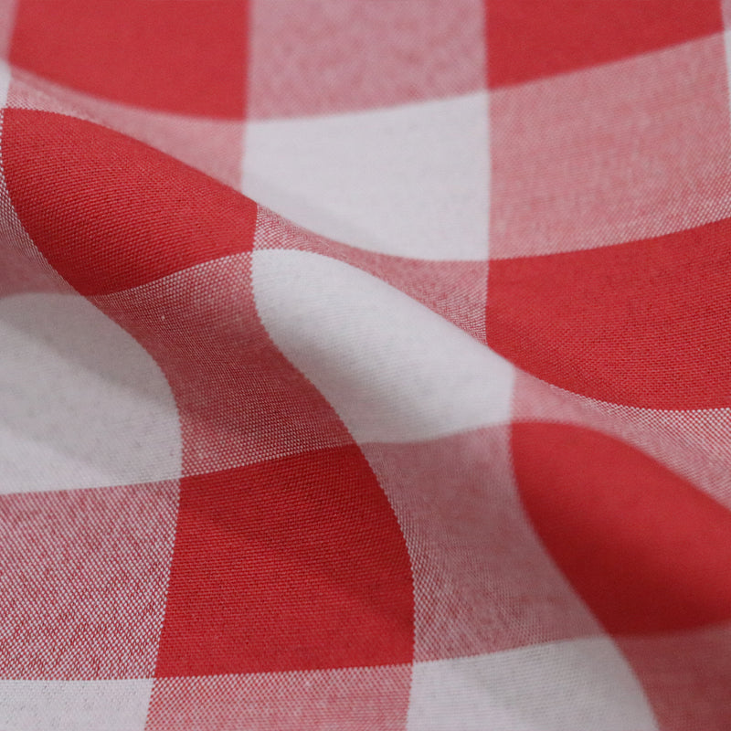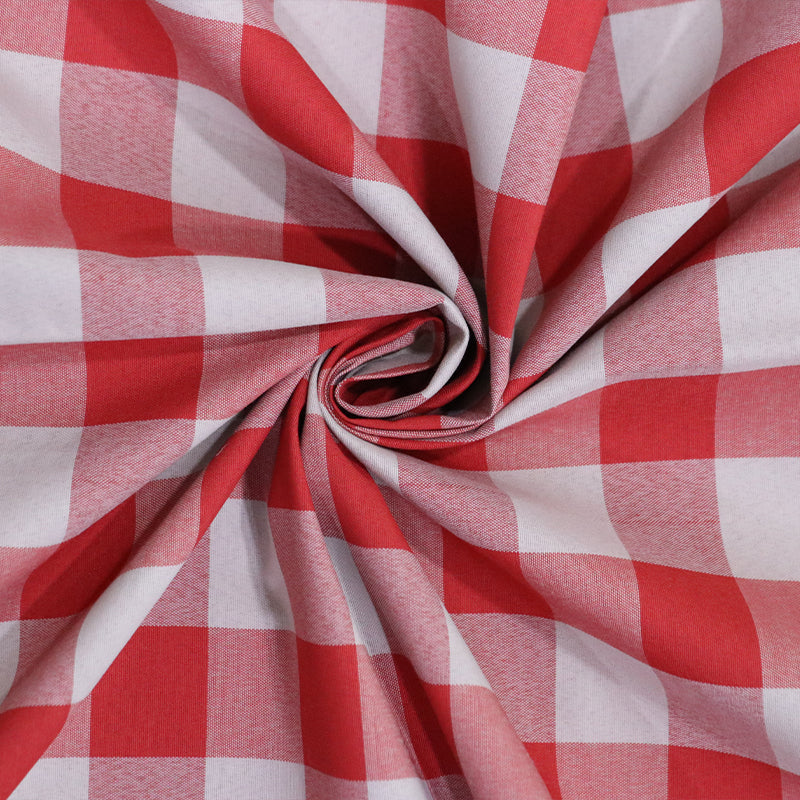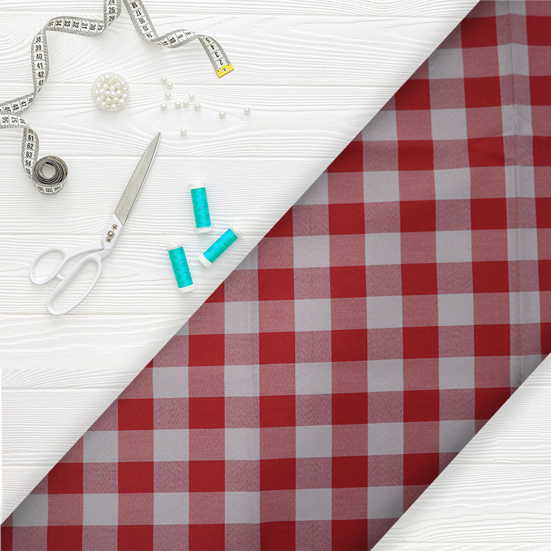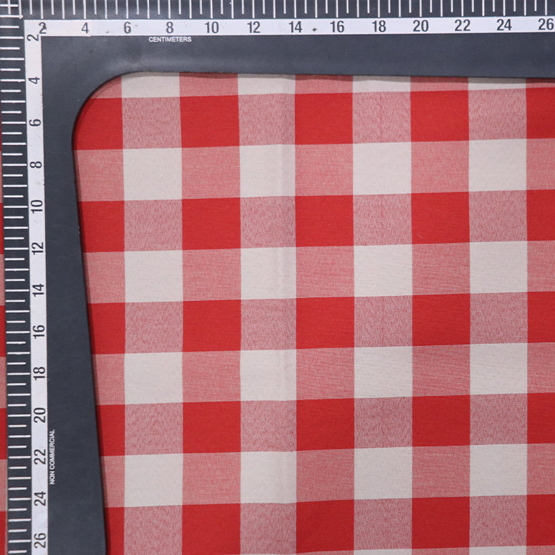 Red And Beige Checks Pattern Yarn Dyed Cotton Fabric