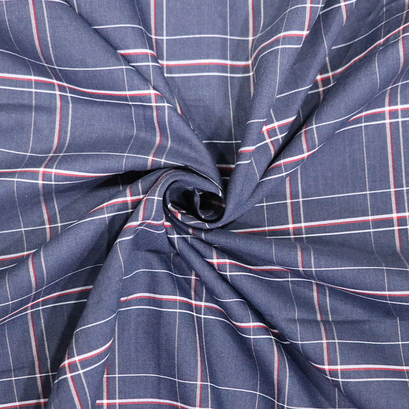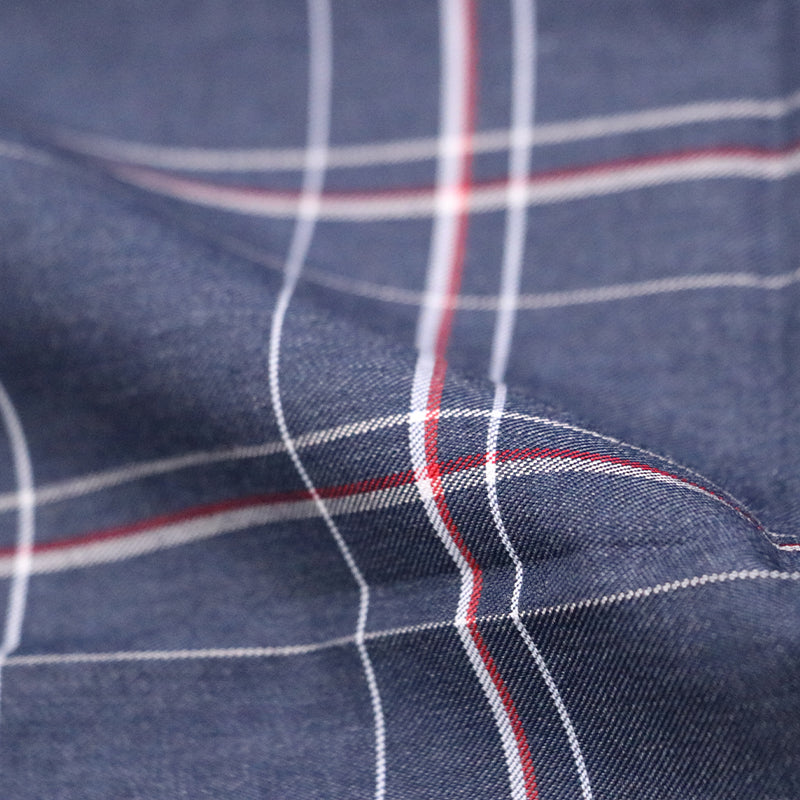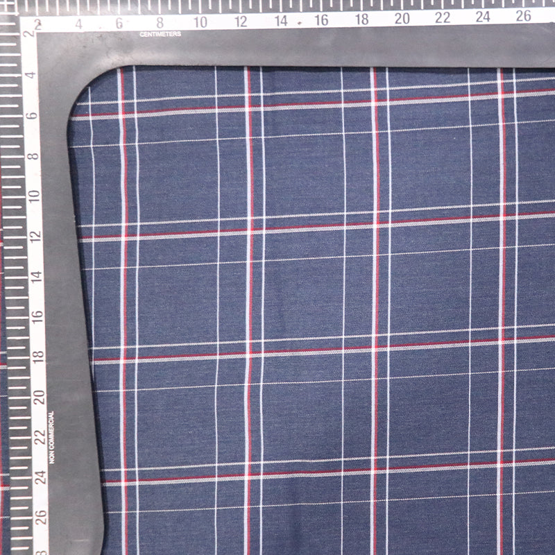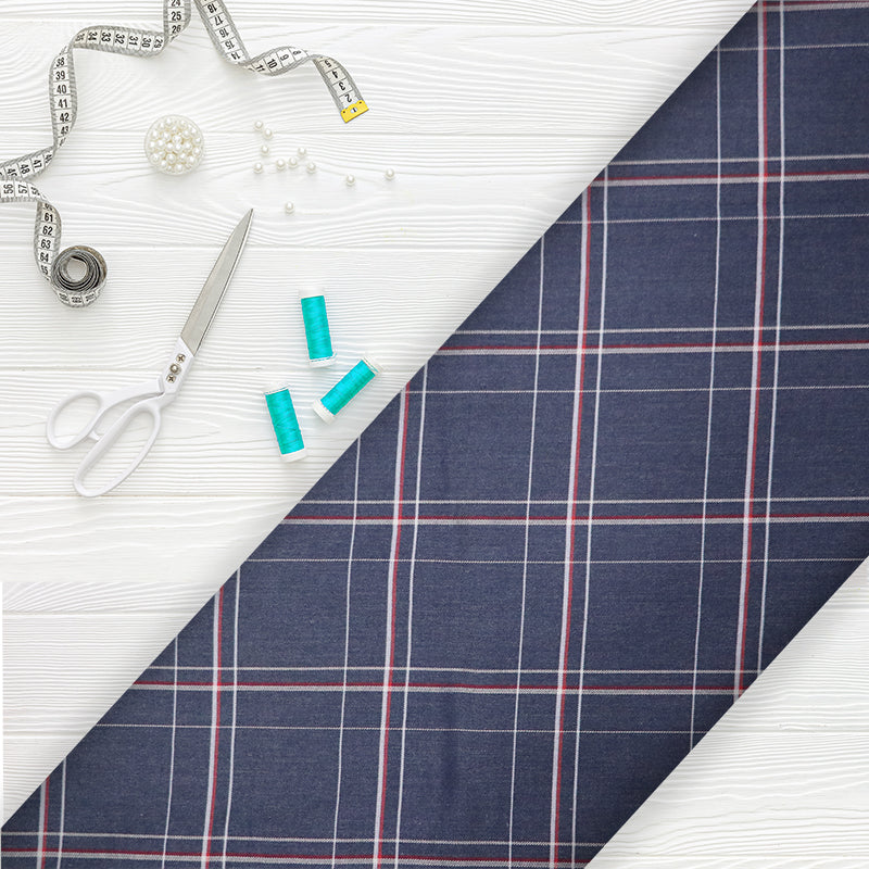 Navy Blue And Red Checks Pattern Yarn Dyed Cotton Fabric