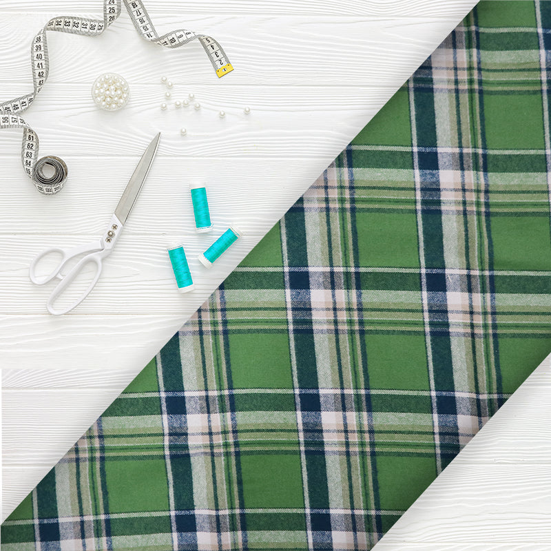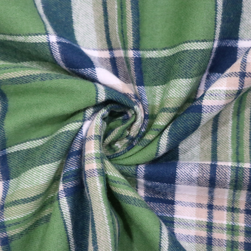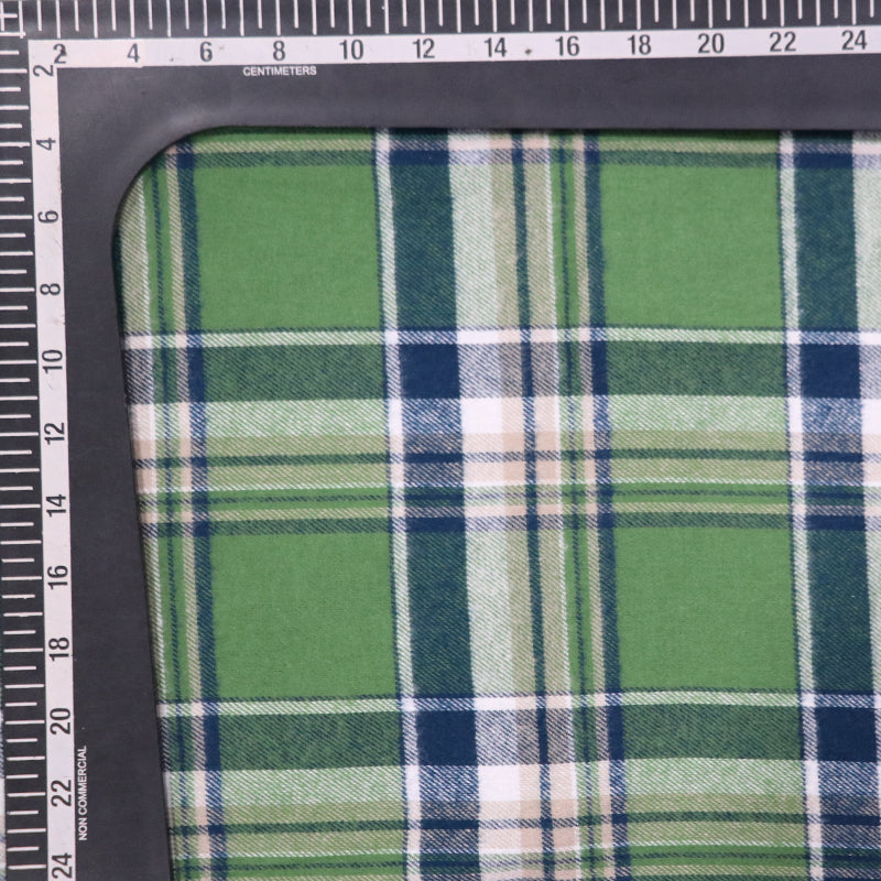 Green And Blue Checks Pattern Yarn Dyed brush Cotton Fabric