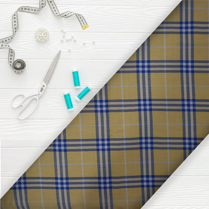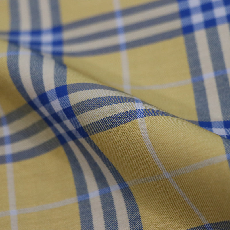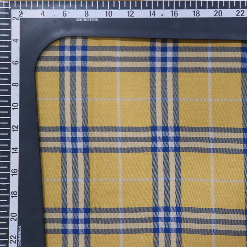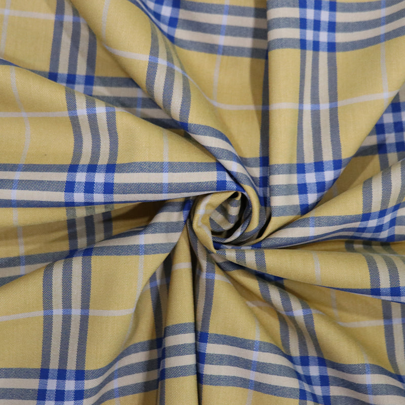 Yellow And Blue Checks Pattern Yarn Dyed Cotton Lycra Fabric