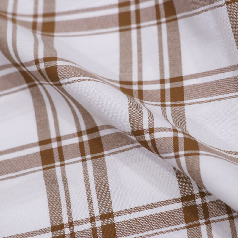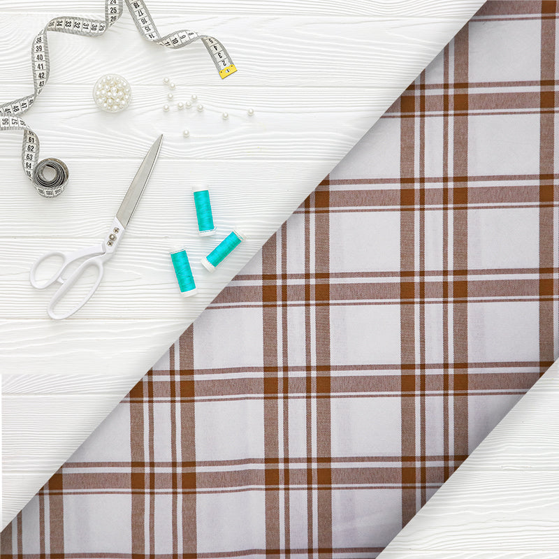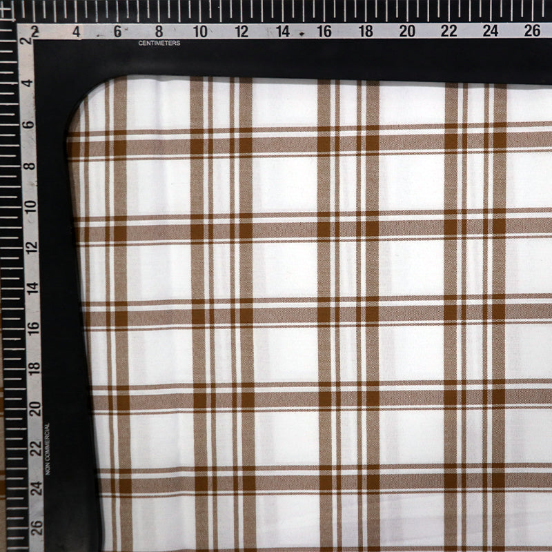 White And Beige Checks Pattern Screen Print Cotton Fabric