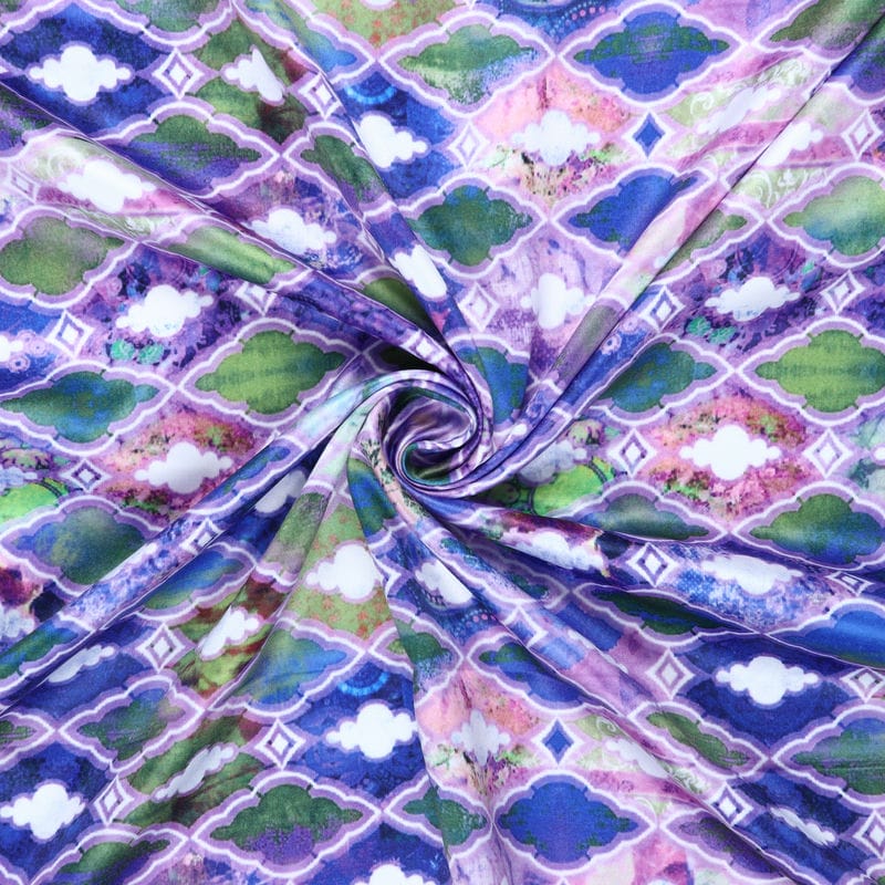 Blue And White Chevron Pattern Digital Print Silk Satin Fabric
