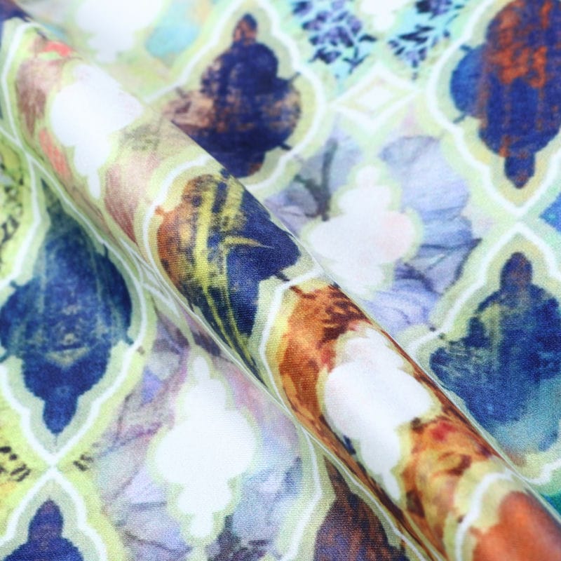 Multi Color Chevron Pattern Digital Print Silk Satin Fabric