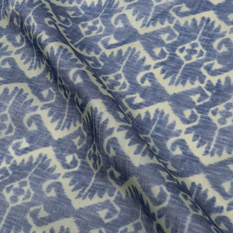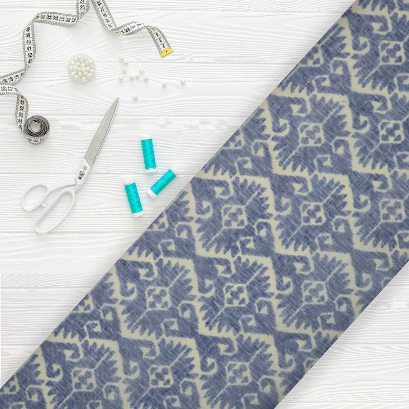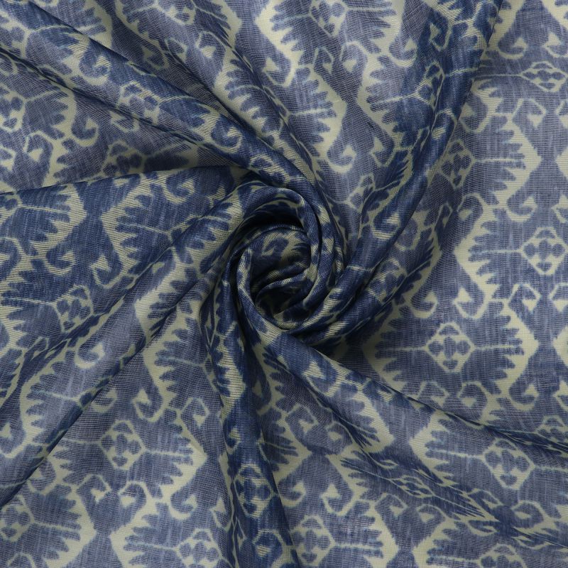 Navy Blue And Dusty Yellow Chevron Pattern Digital Print Chanderi Fabric