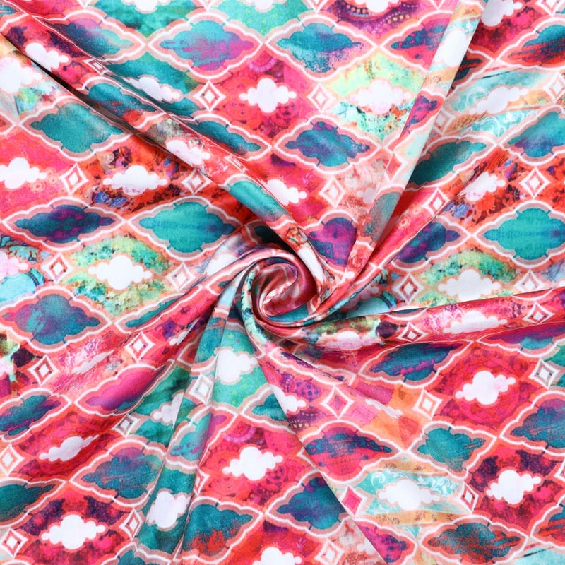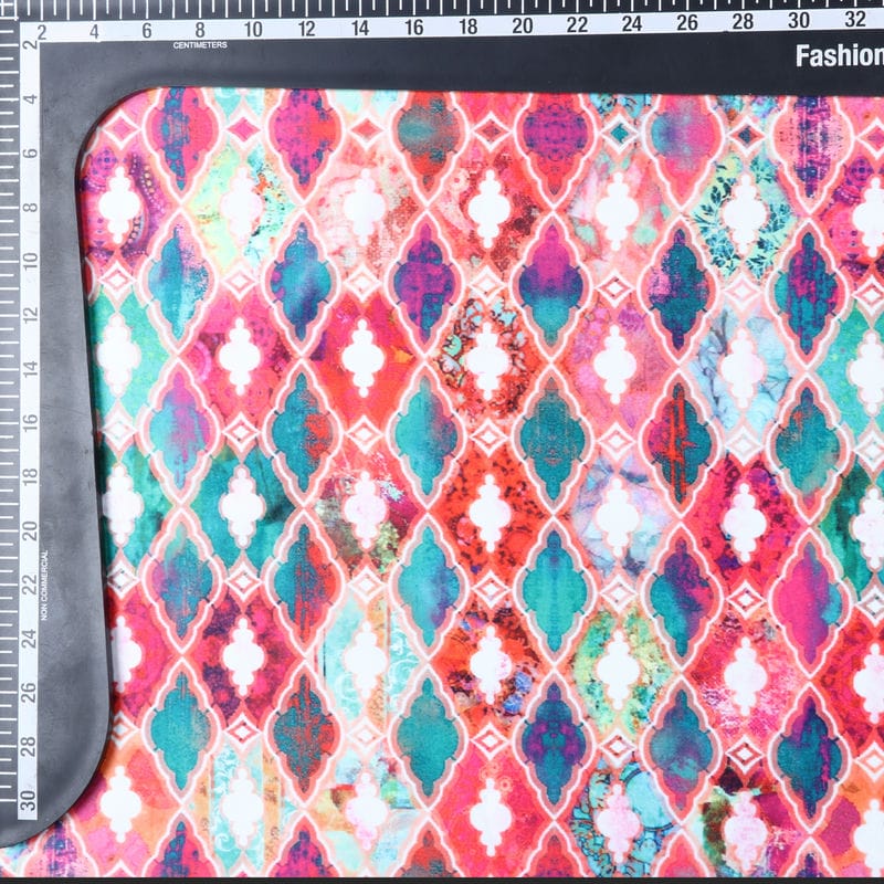 Red And Turquoise Chevron Pattern Digital Print Silk Satin Fabric