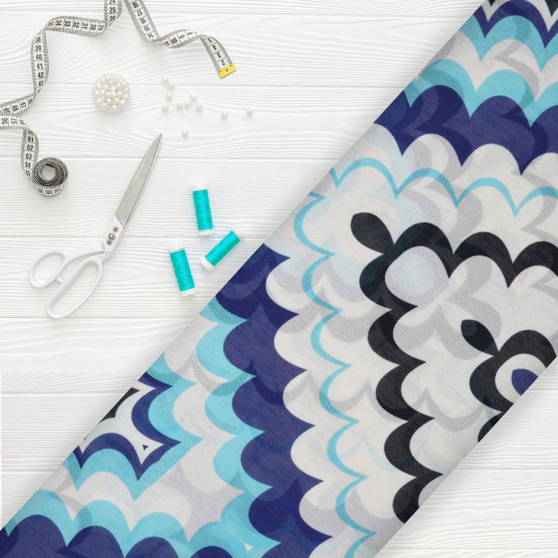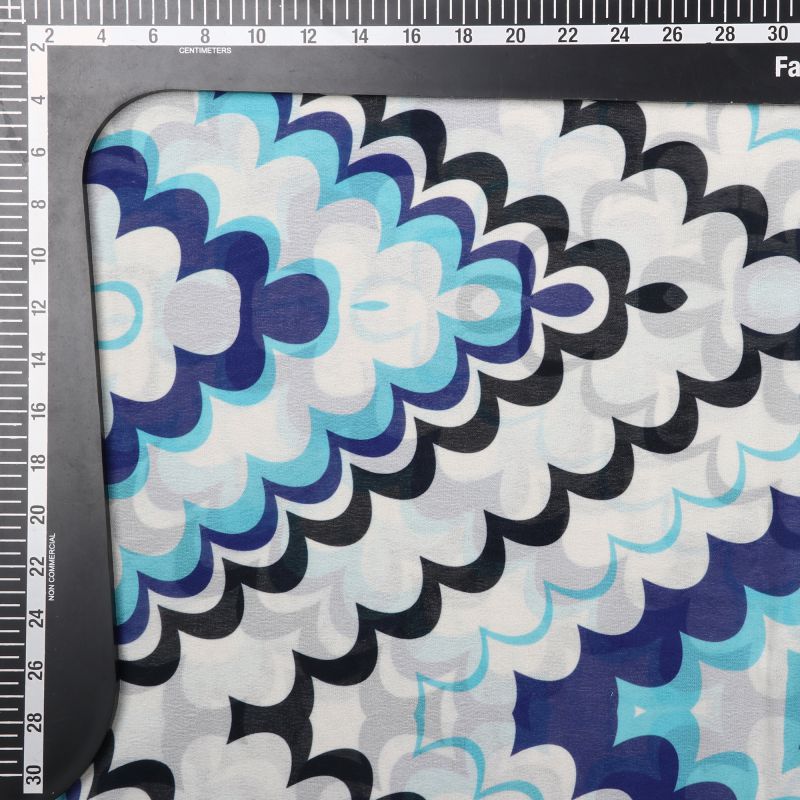 White And Blue Chevron Pattern Digital Print Georgette Fabric