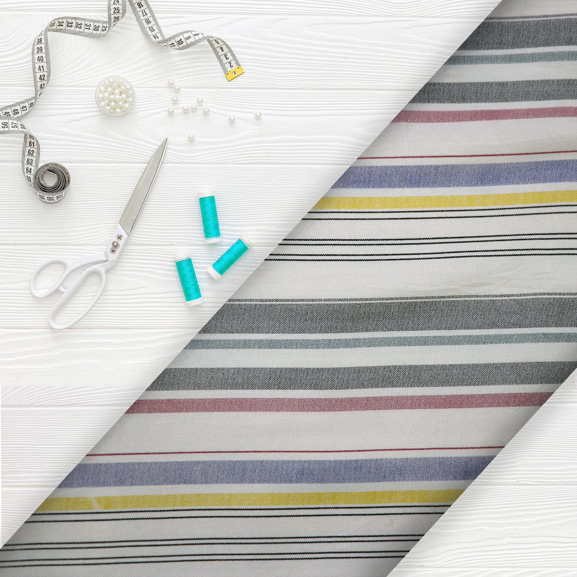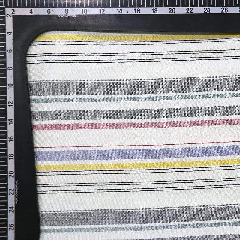 White,Yellow And Green Stripes Pattern Screen Print Cotton Fabric