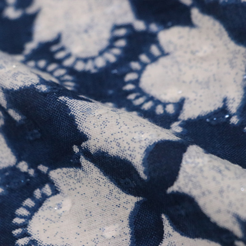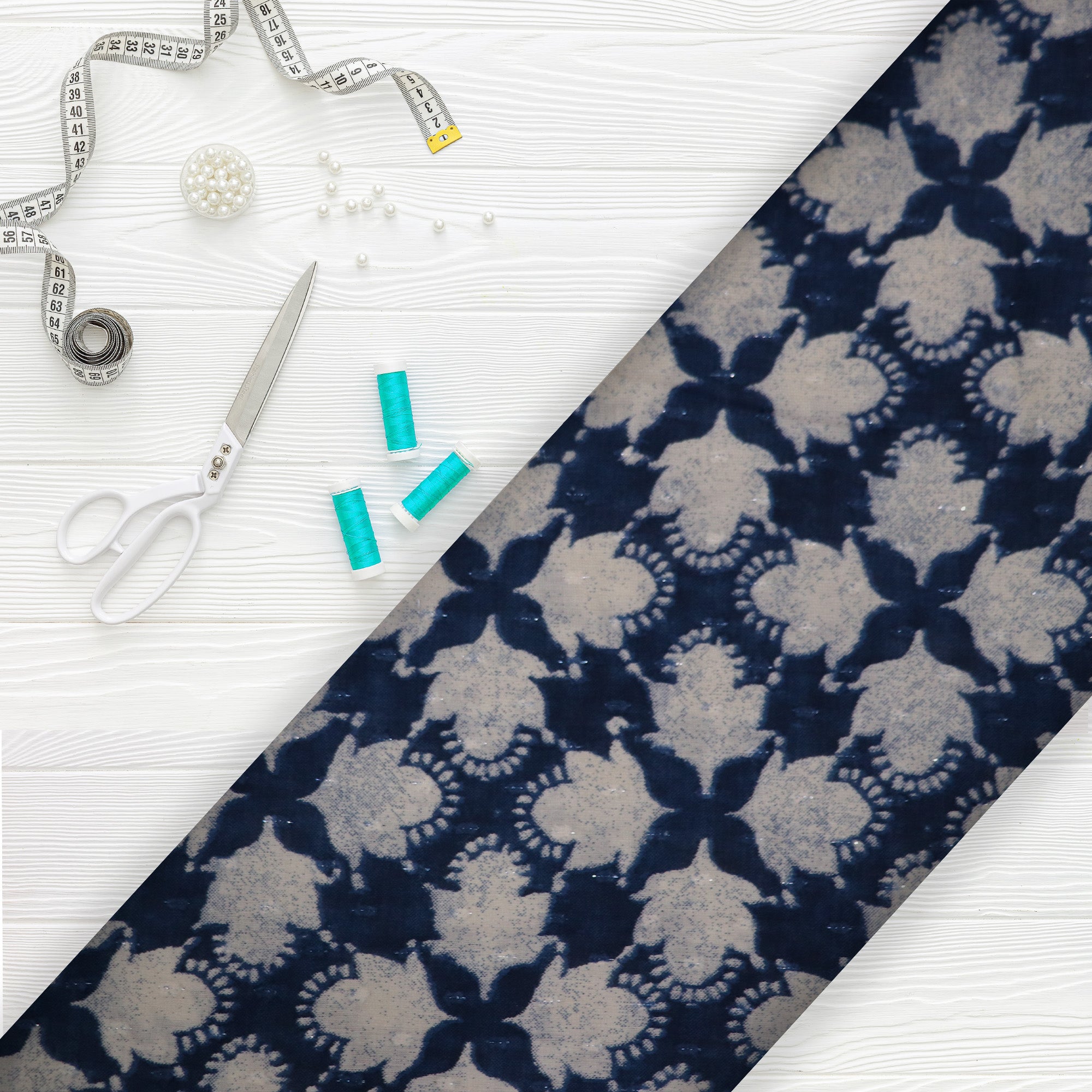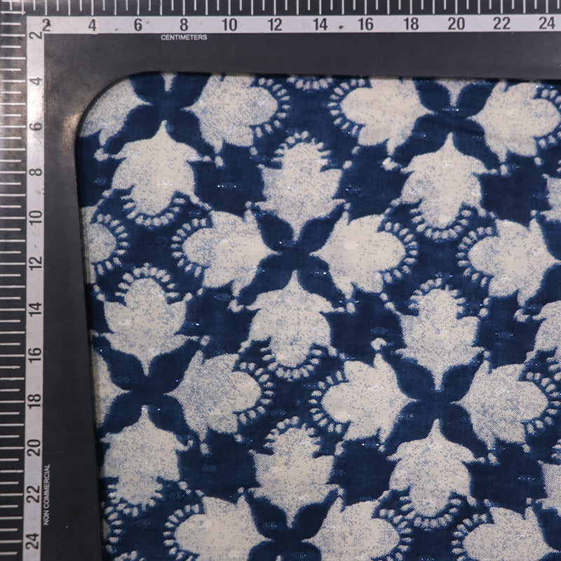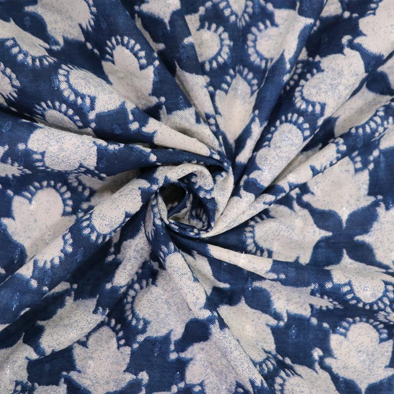 White And Blue Handblock Pattern Screen Print Cotton Fabric