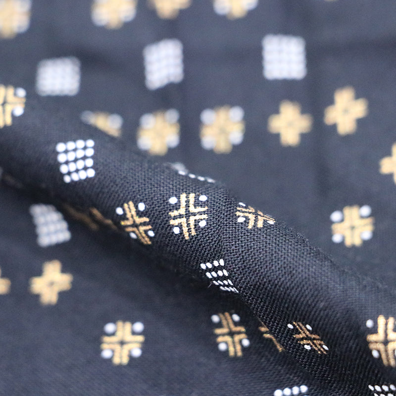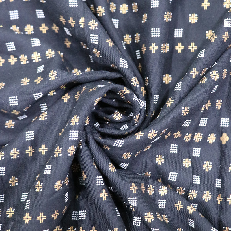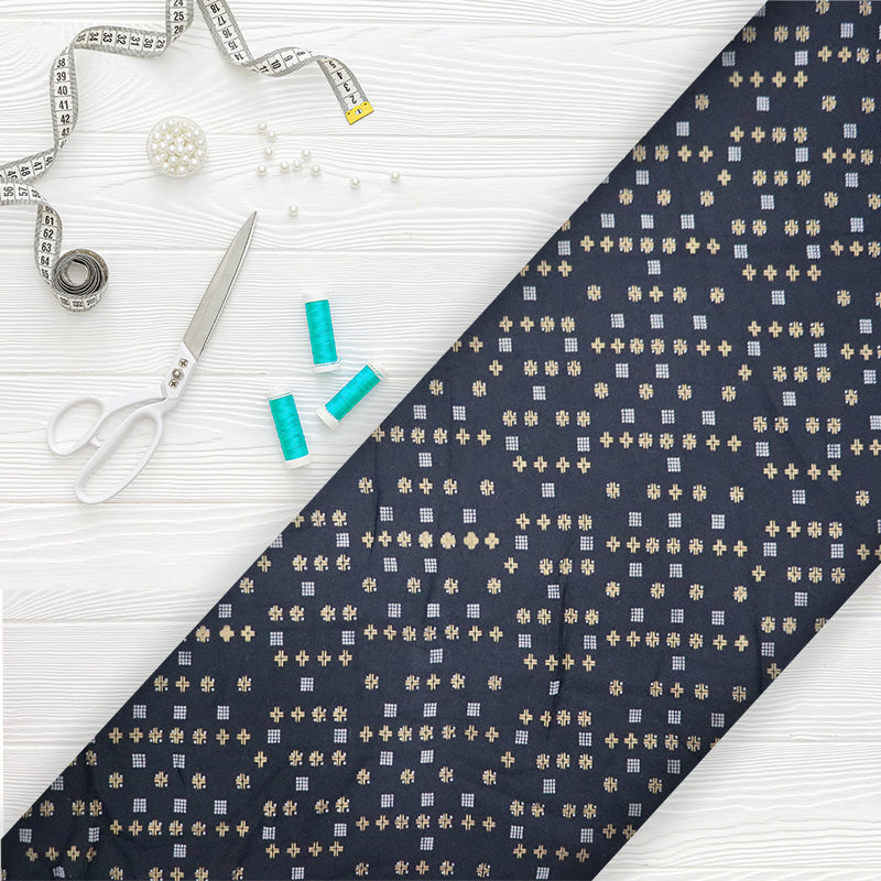Black And Gold Abstract Pattern Screen Print Cotton Fabric
