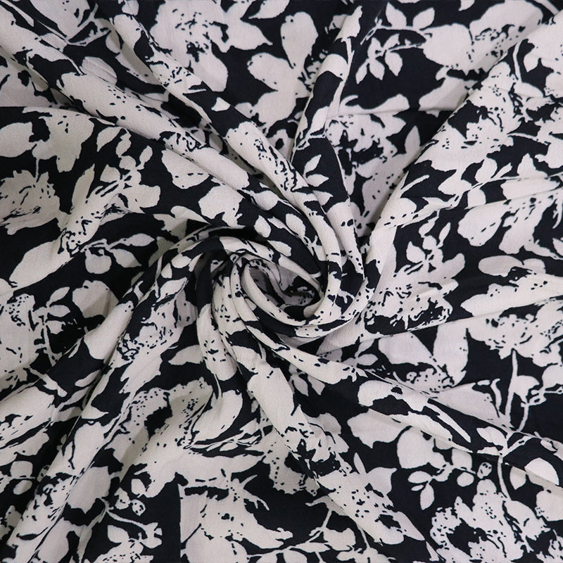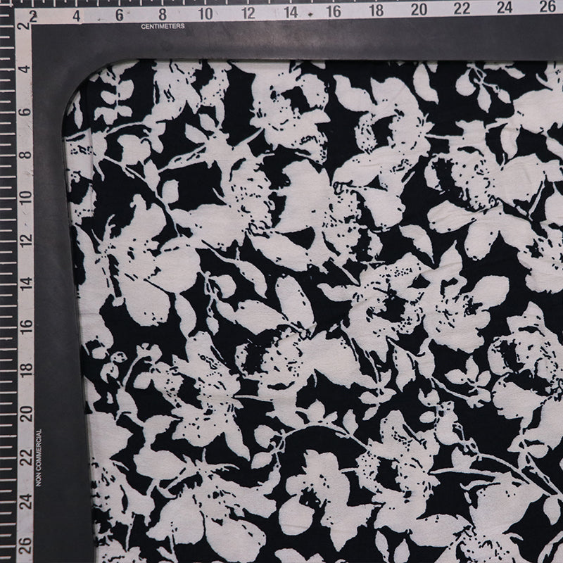 Navy Blue And White Floral Pattern Screen Print Cotton Flax Fabric