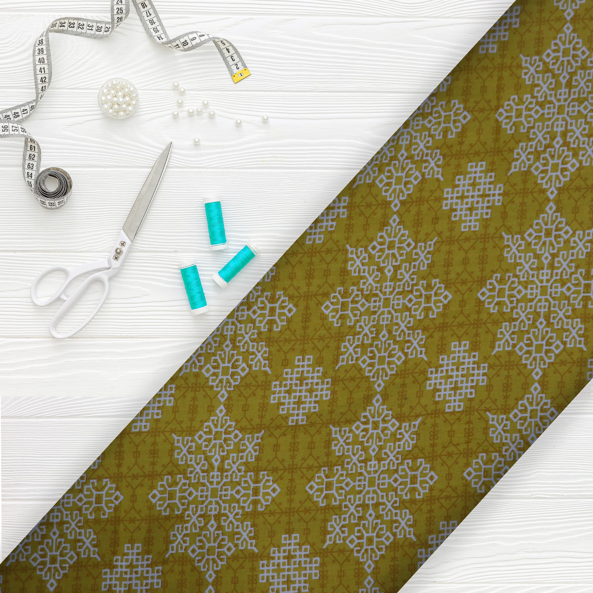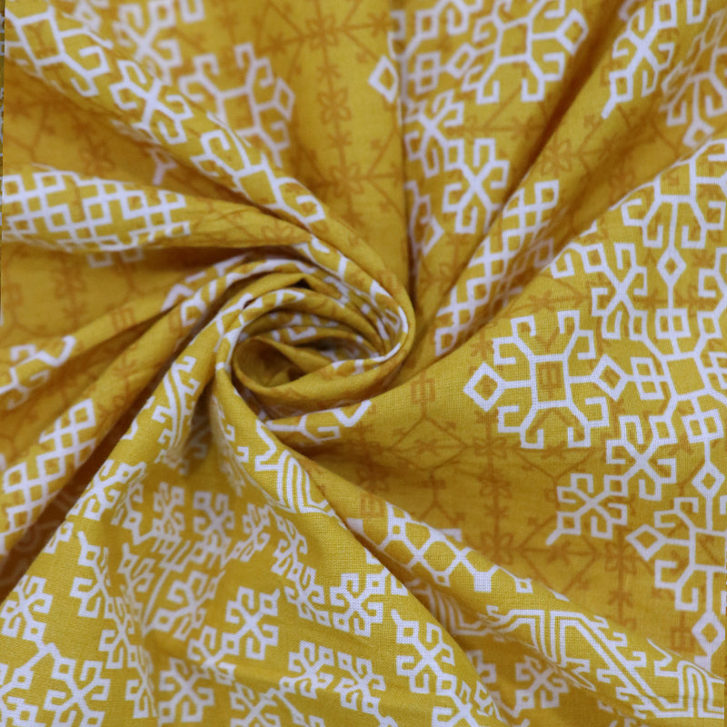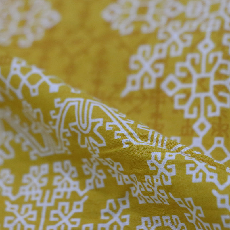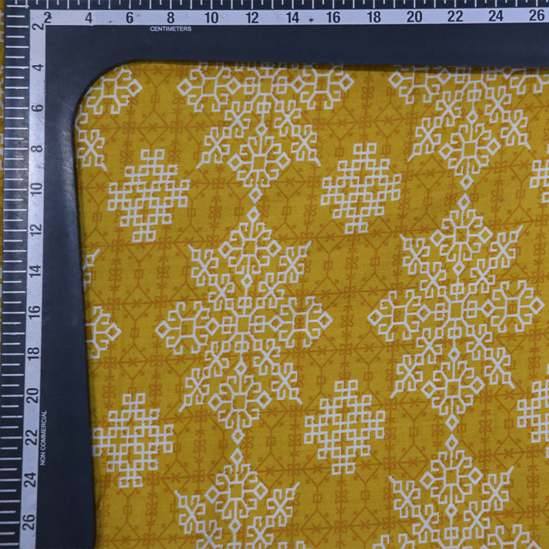 Musterd Yellow And White Floral Pattern Screen Print Cotton Fabric