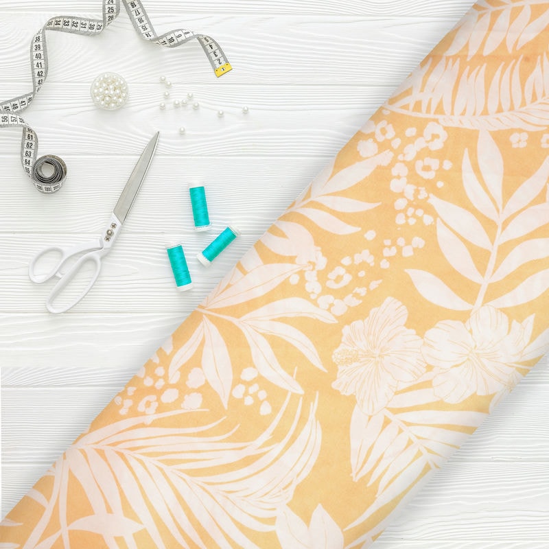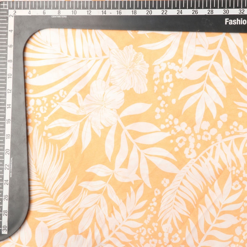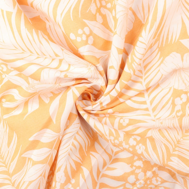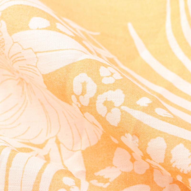 Light Yellow And White Tropical Pattern Screen Print Cambric Cotton Fabric