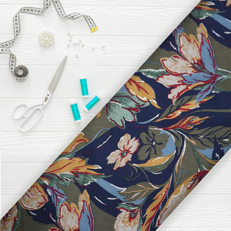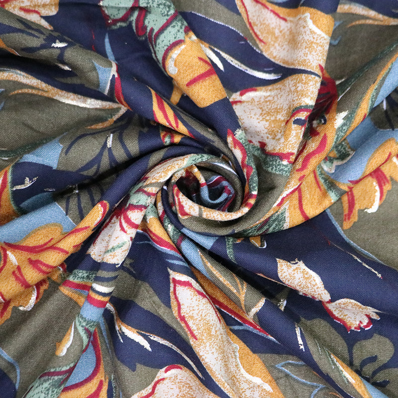 Multi Color Floral Pattern Screen Print Cotton Fabric