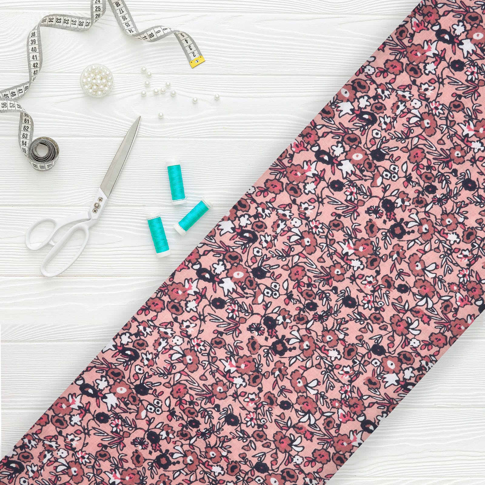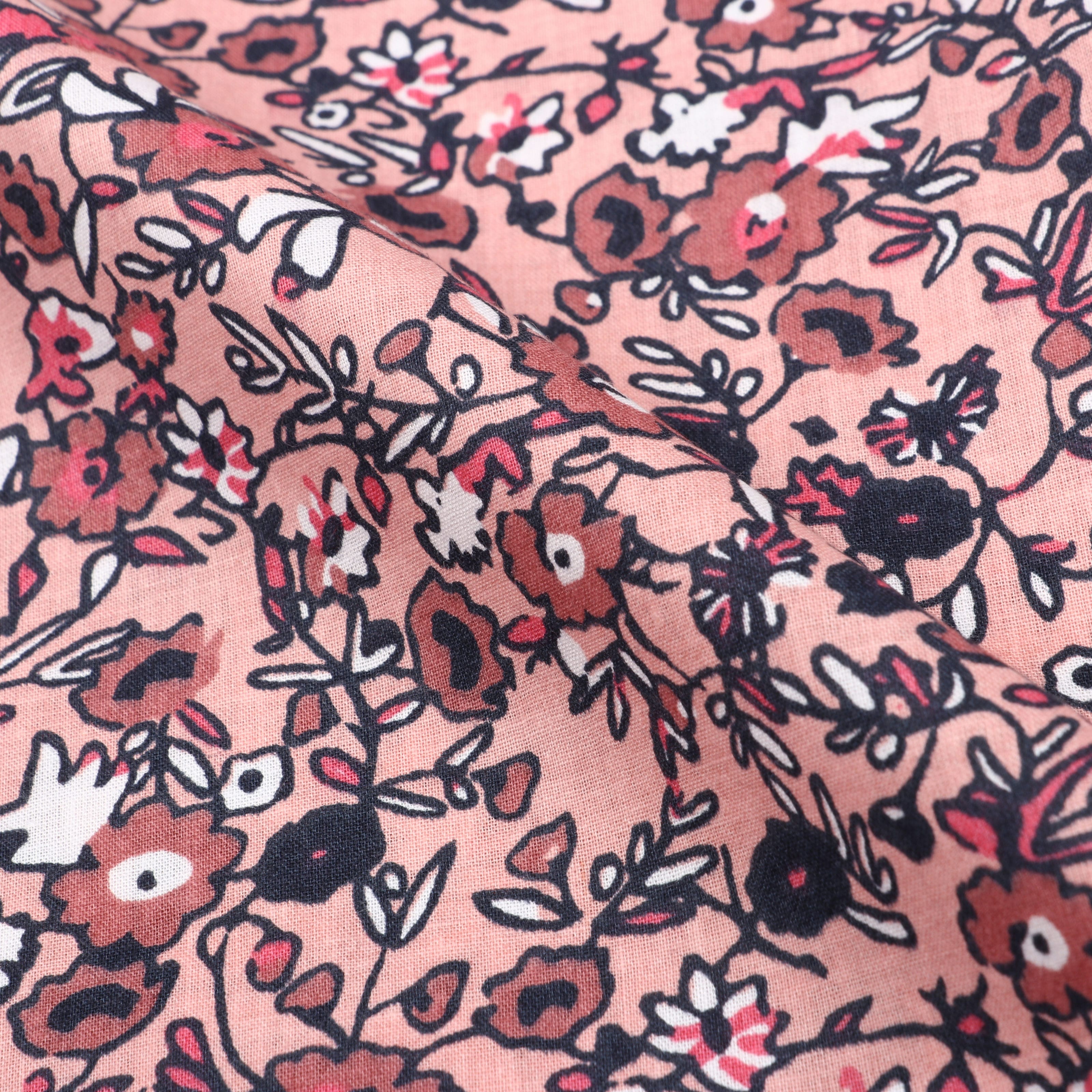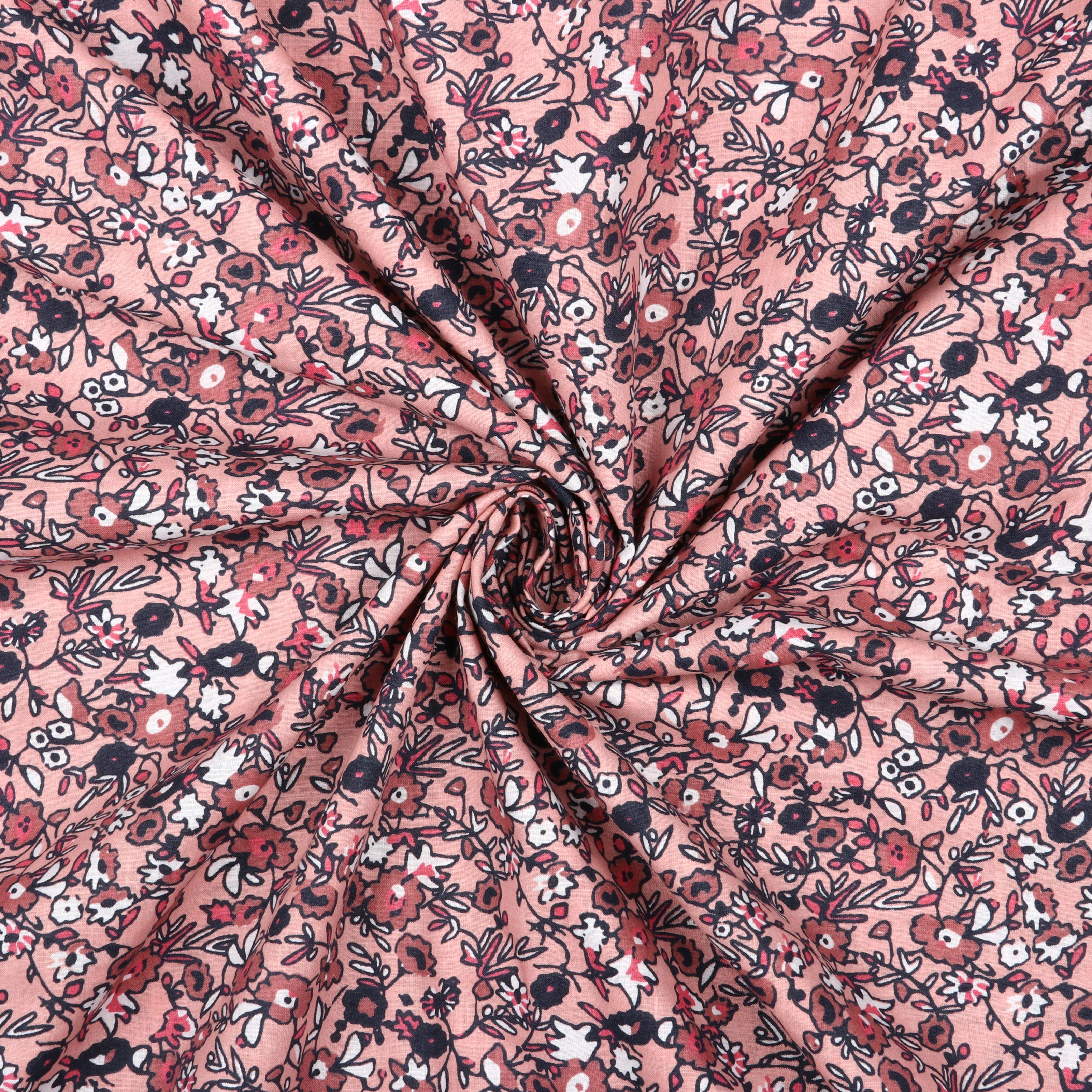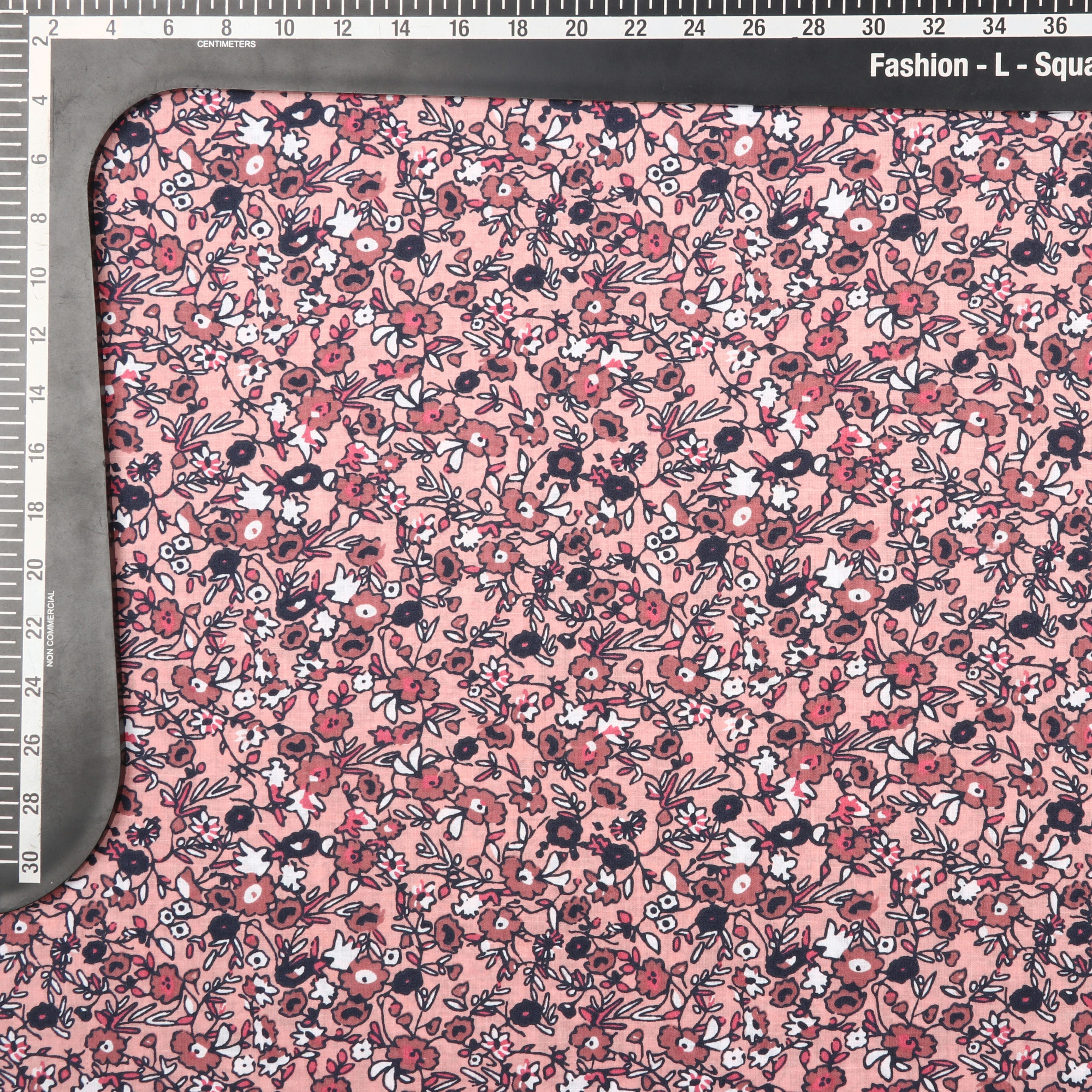 Pale Red And Dark Blue Floral Pattern Screen Print Cotton Fabric