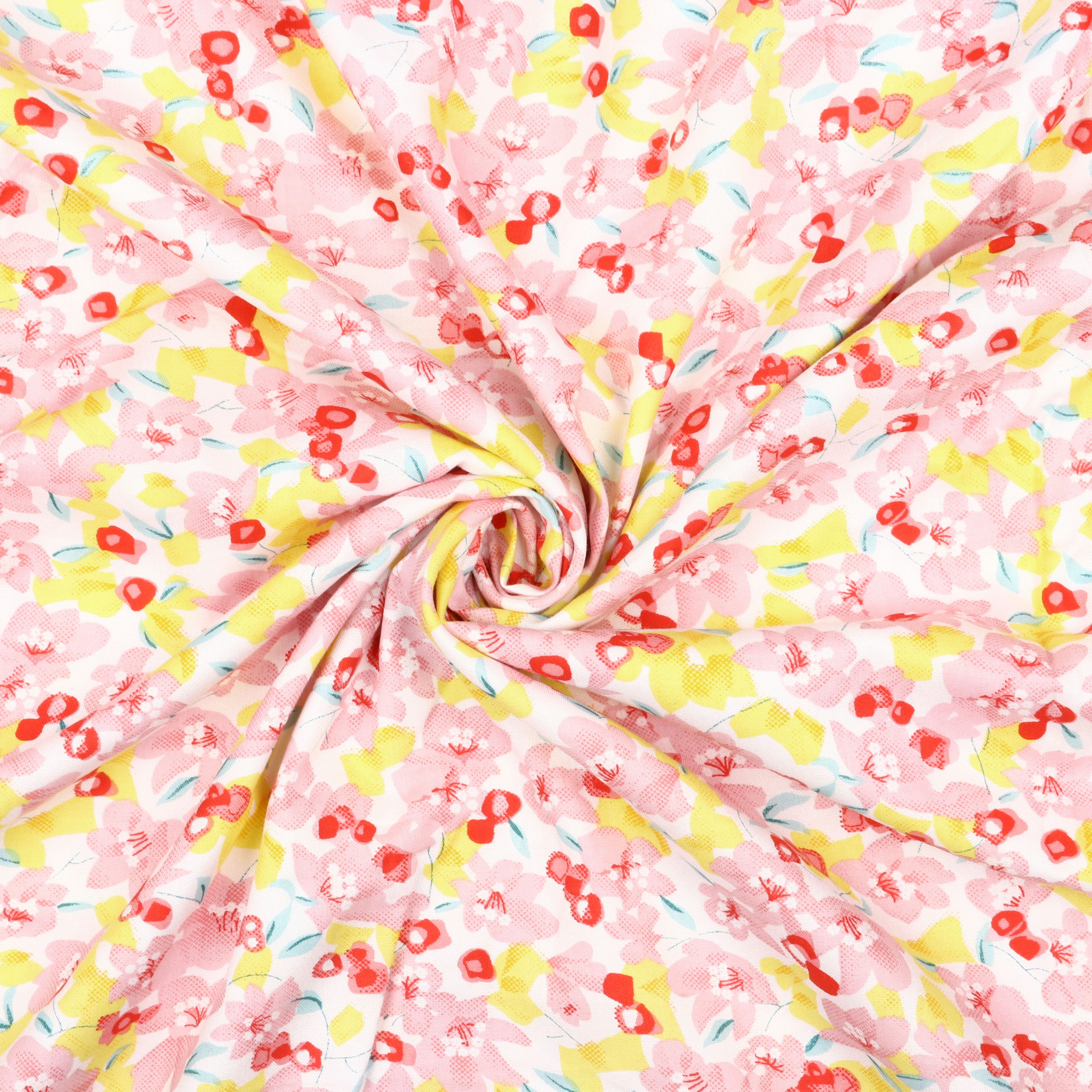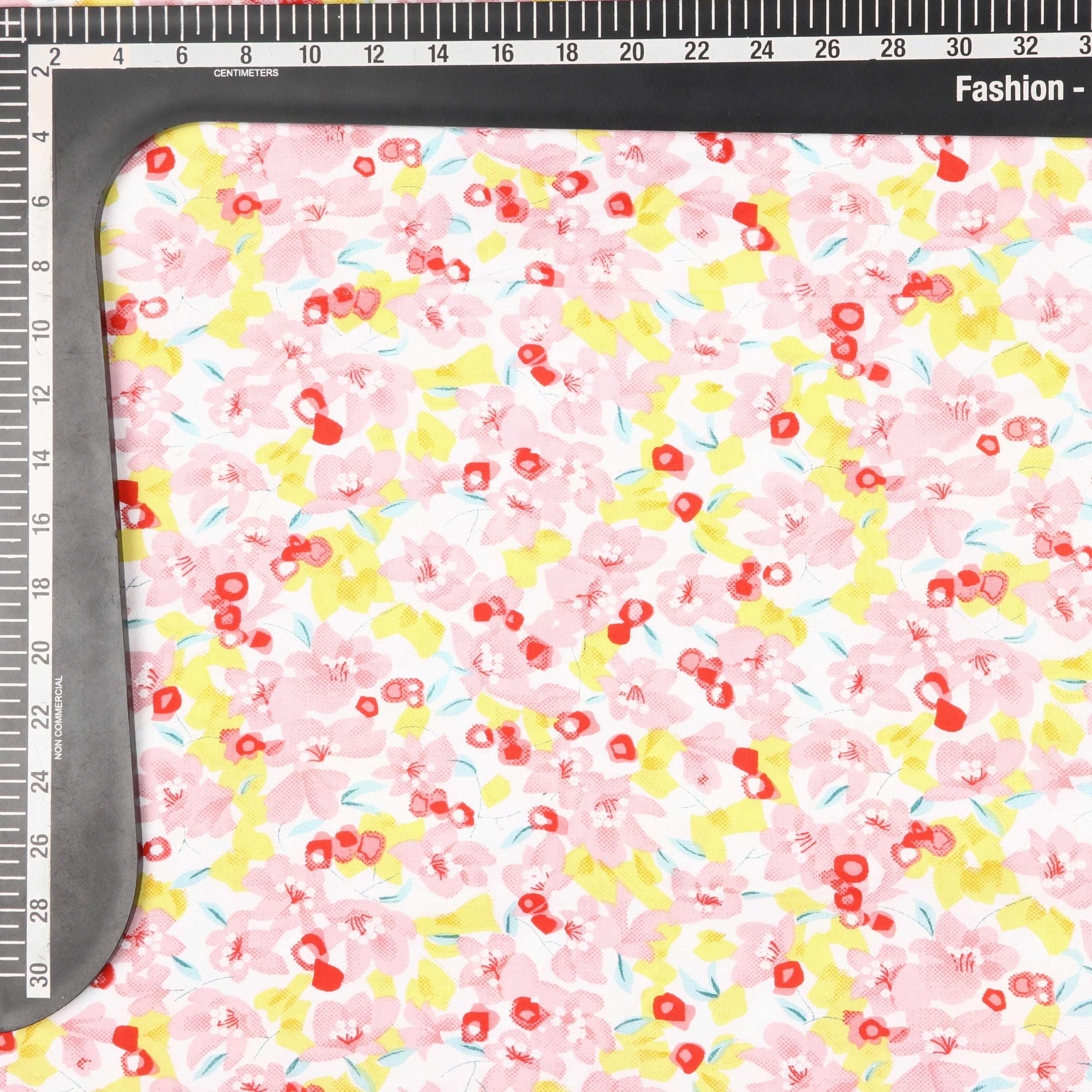 Pink And Yellow Floral Pattern Screen Print Cotton Fabric