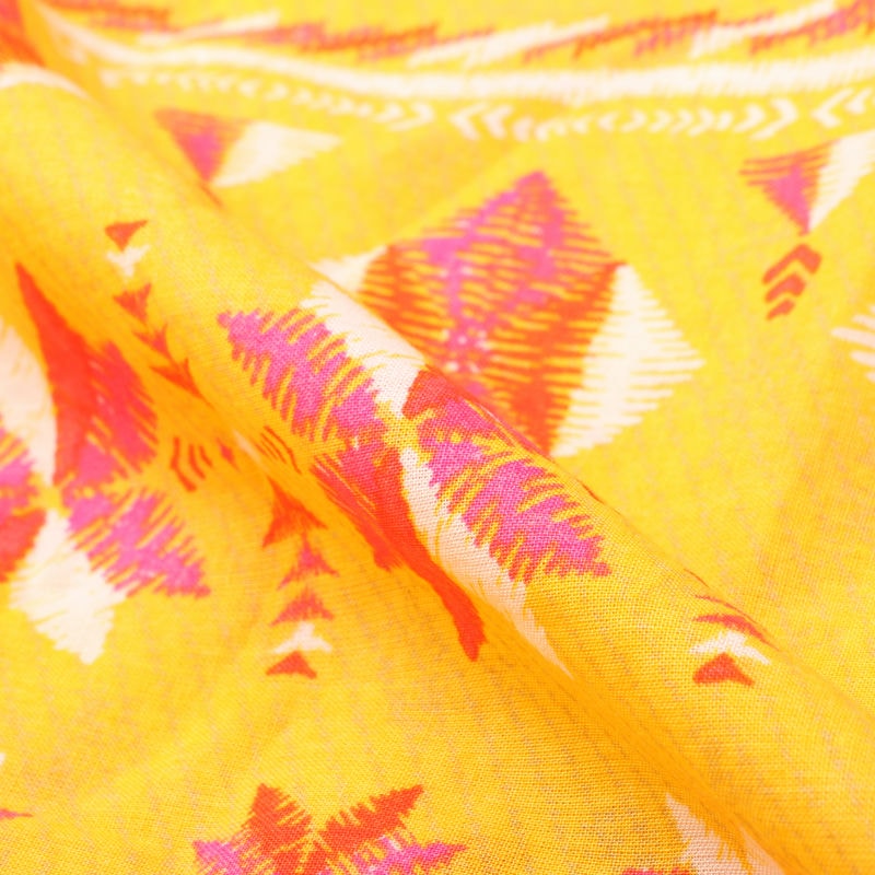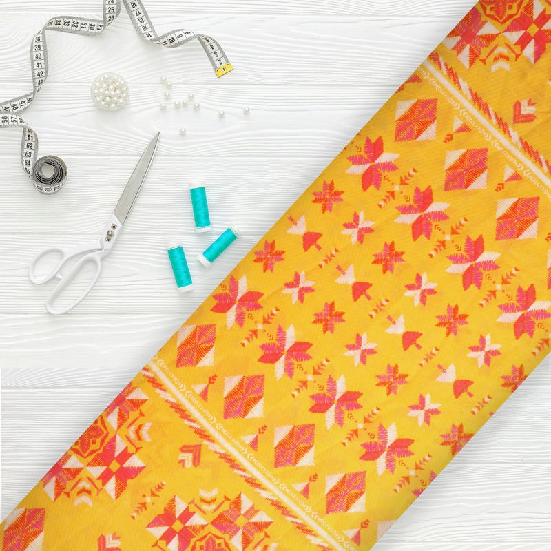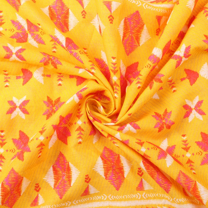 Red And Mustard Yellow Traditional Pattern Screen Print Cambric Cotton Fabric