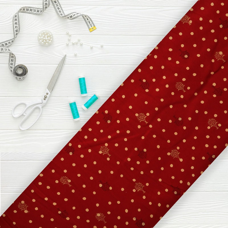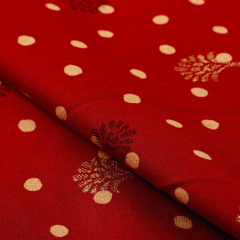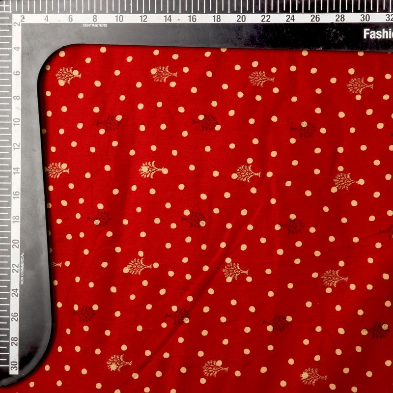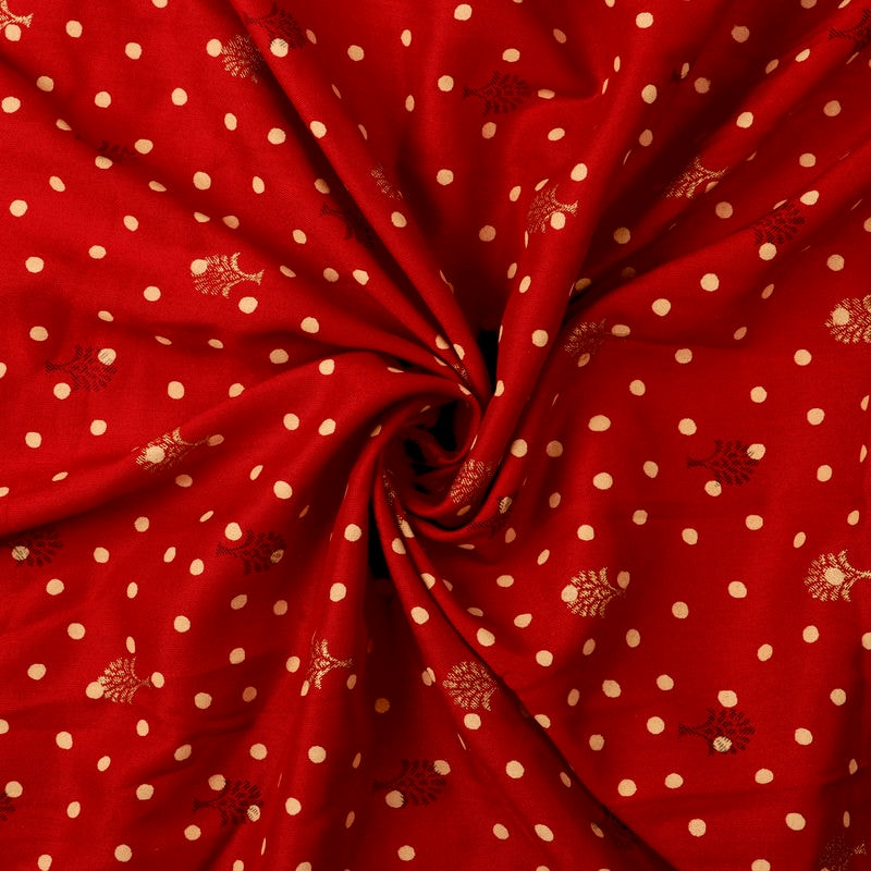 Red And Yellow Polka Dots Pattern Screen Print Cotton Fabric