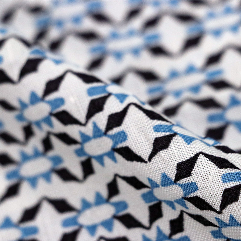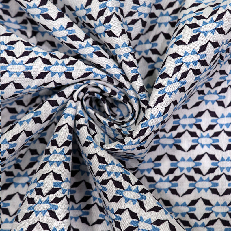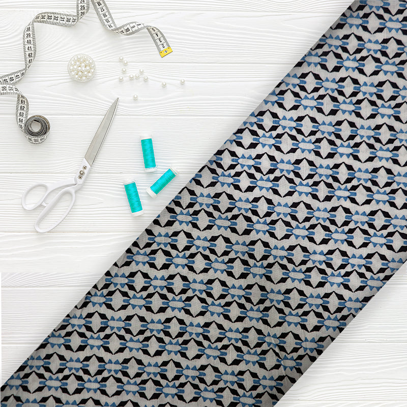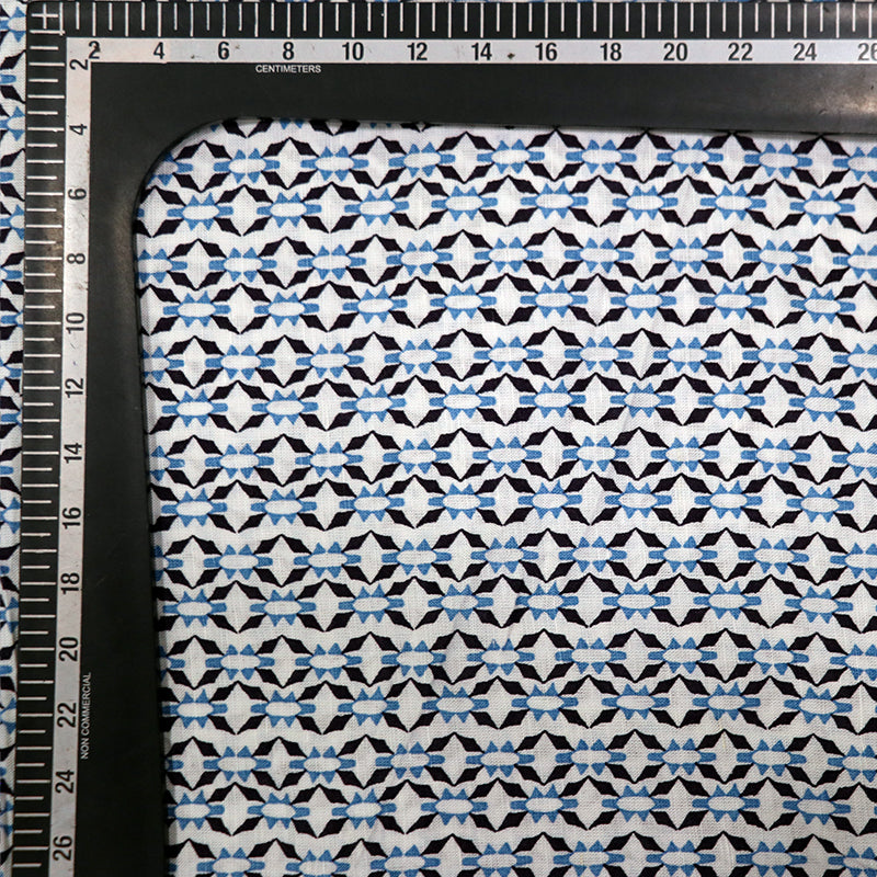 White And Blue Geomatric Pattern Screen Print Cotton Fabric