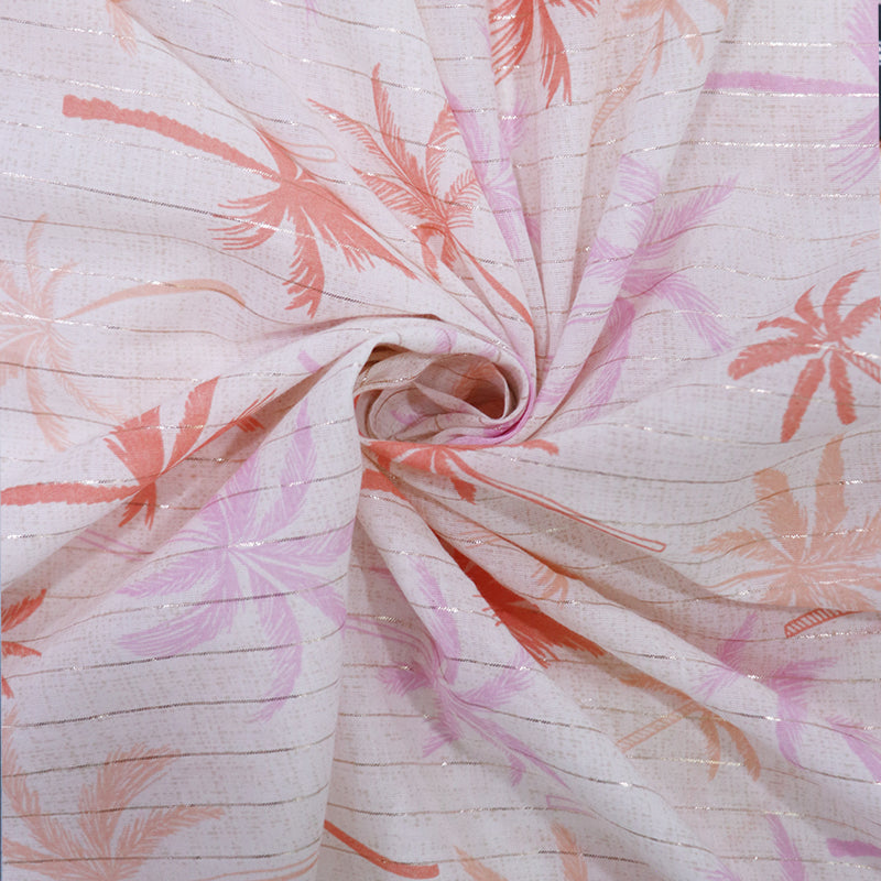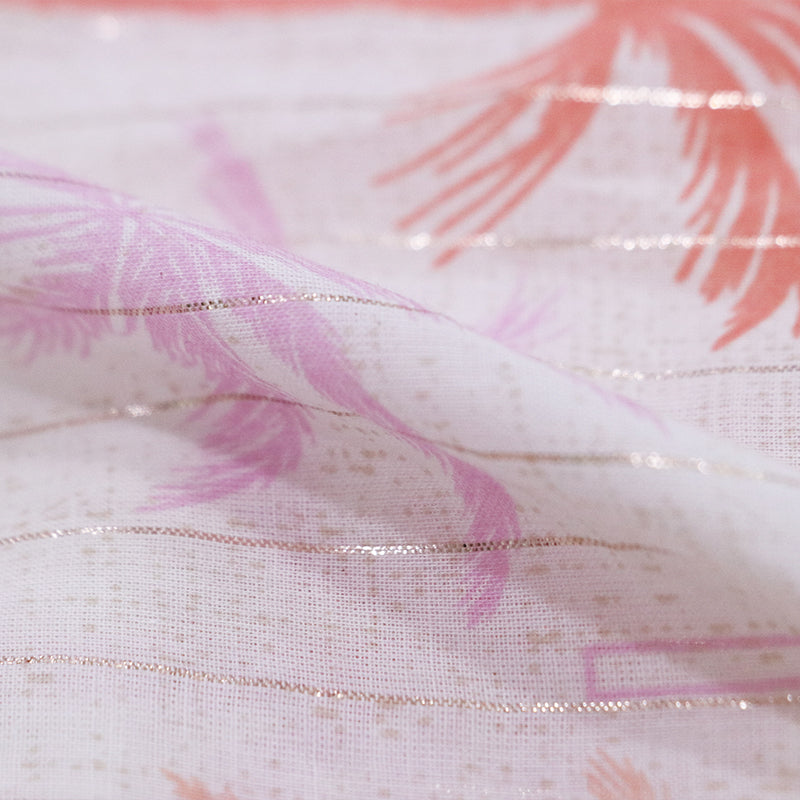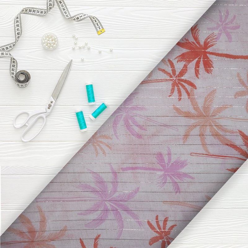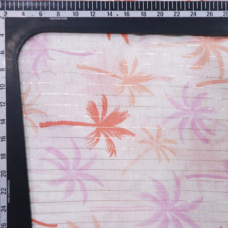 White And Orange Plam Tree lurex Screen Print Cotton Fabric