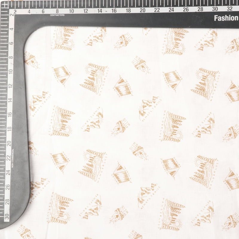 White And Yellow Graphitti Pattern Screen Print Cotton Flax Fabric