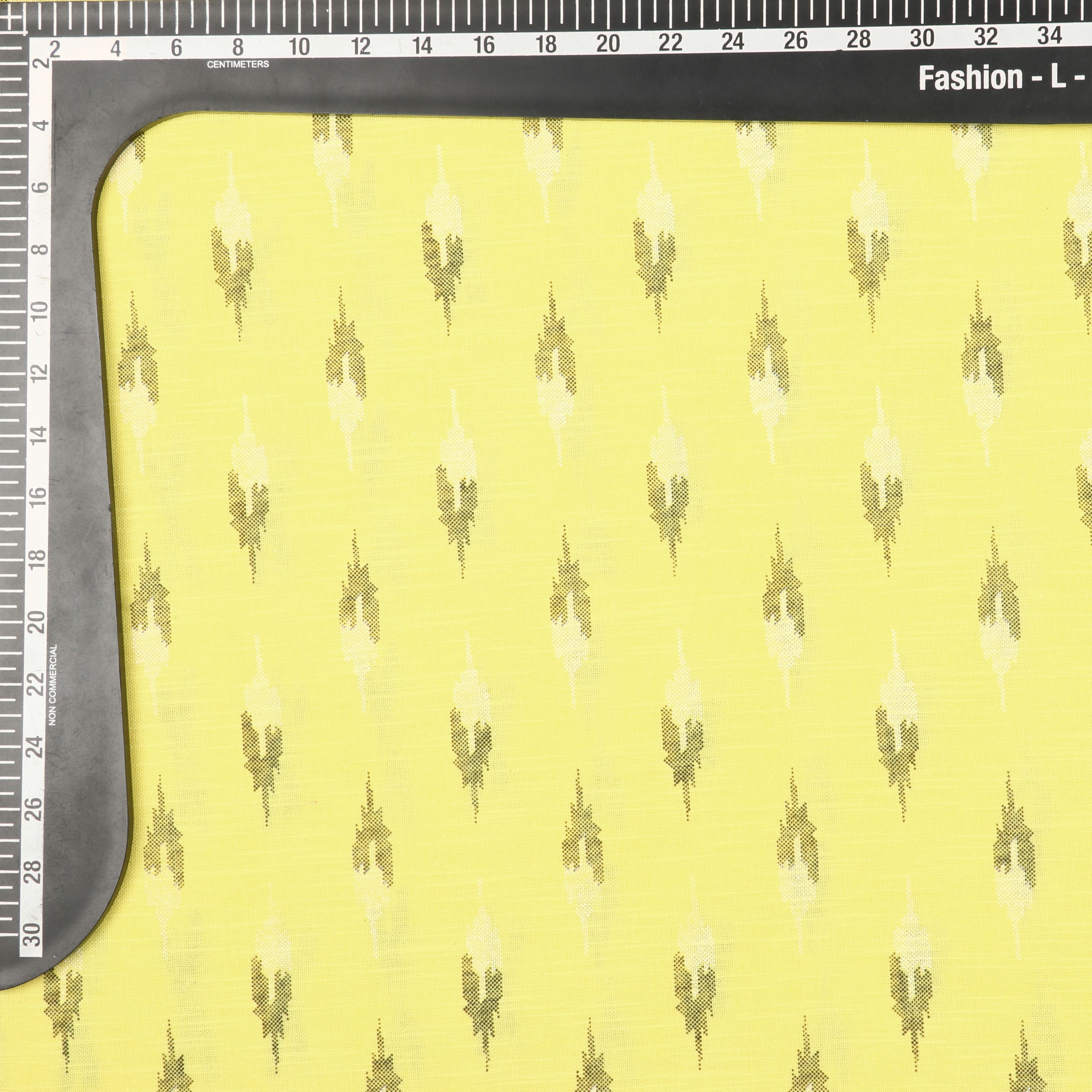 Yellow And Black Geometric Pattern Screen Print Cotton Fabric