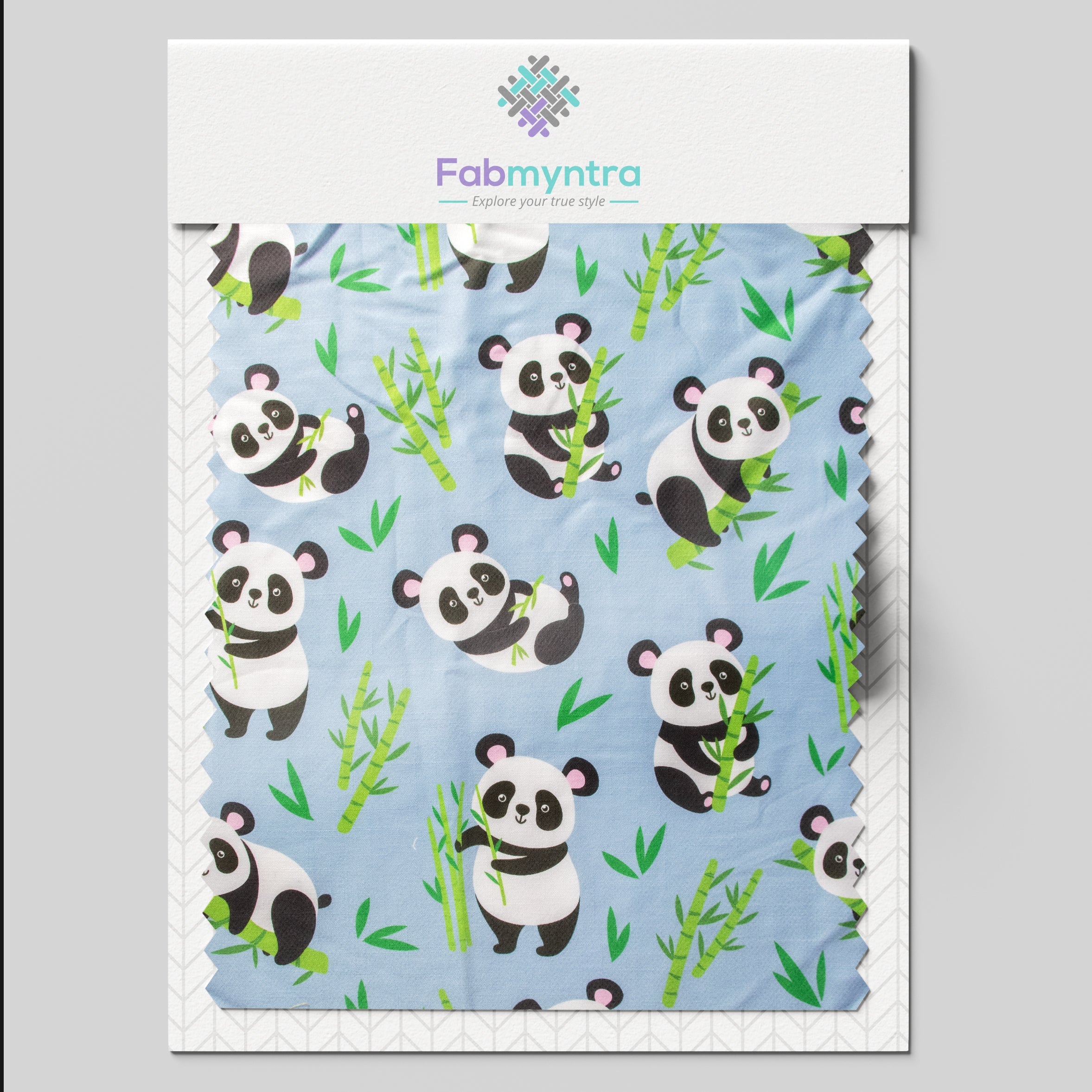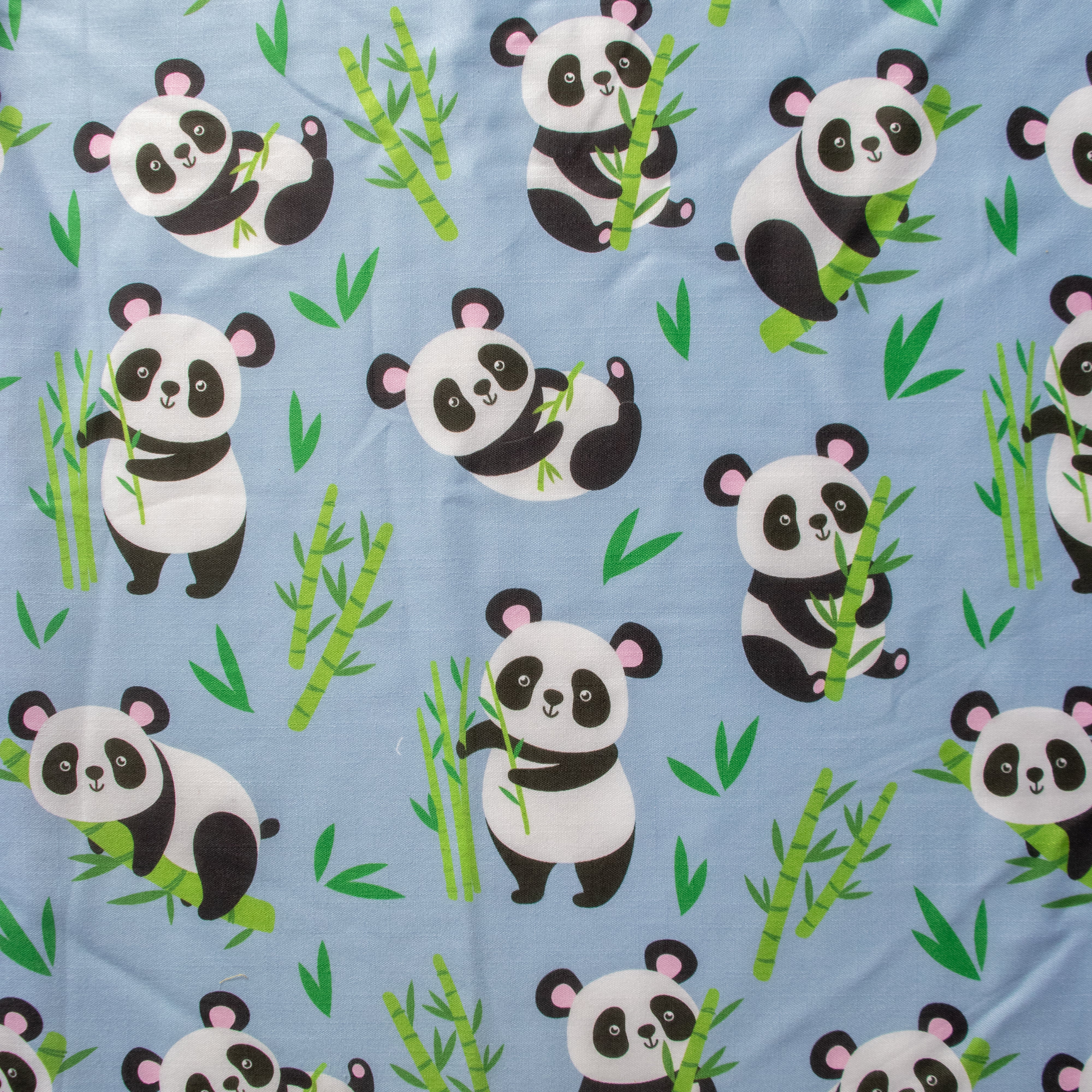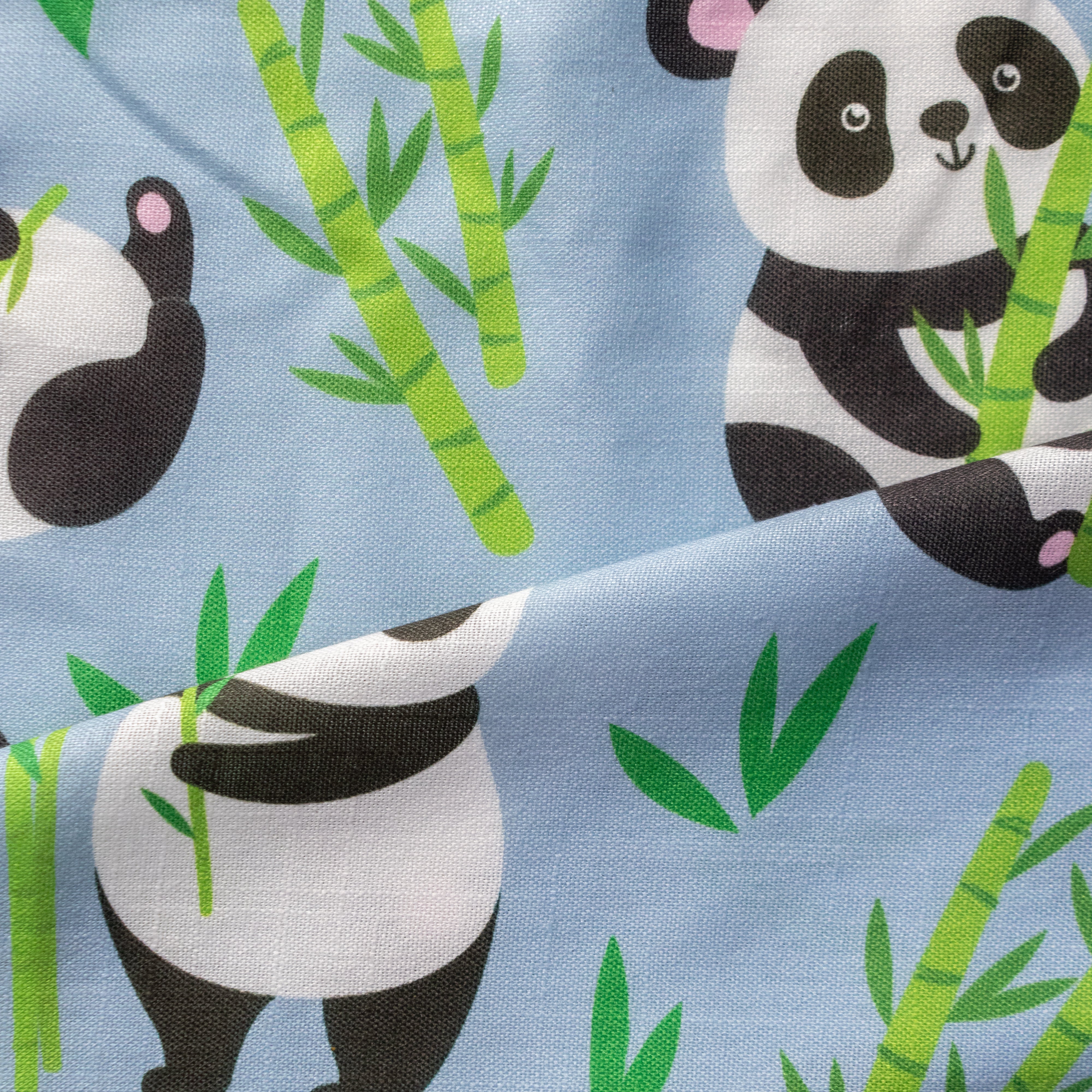 Blue Panda Pattern Digital Print Cotton Slub Fabric