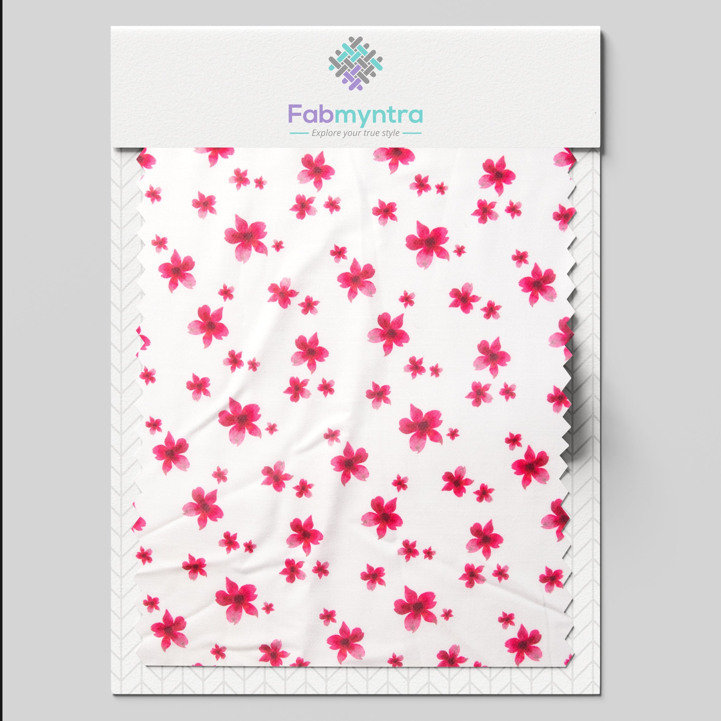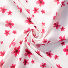 White and Pink Florla Pattern Digital Print Cotton Slub Fabric