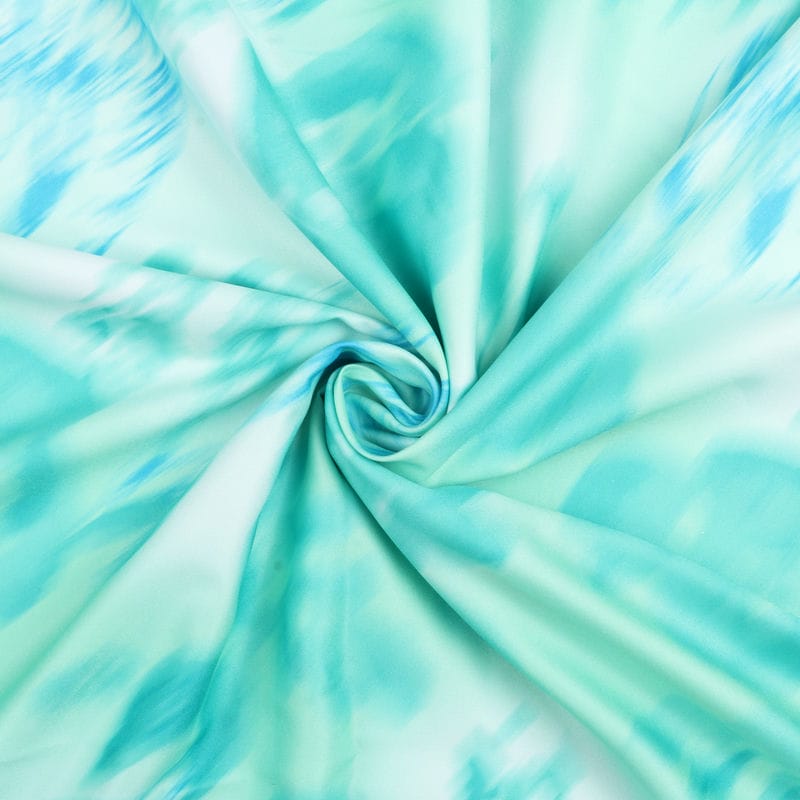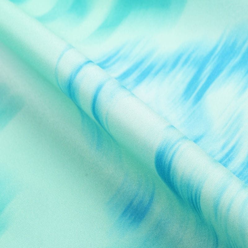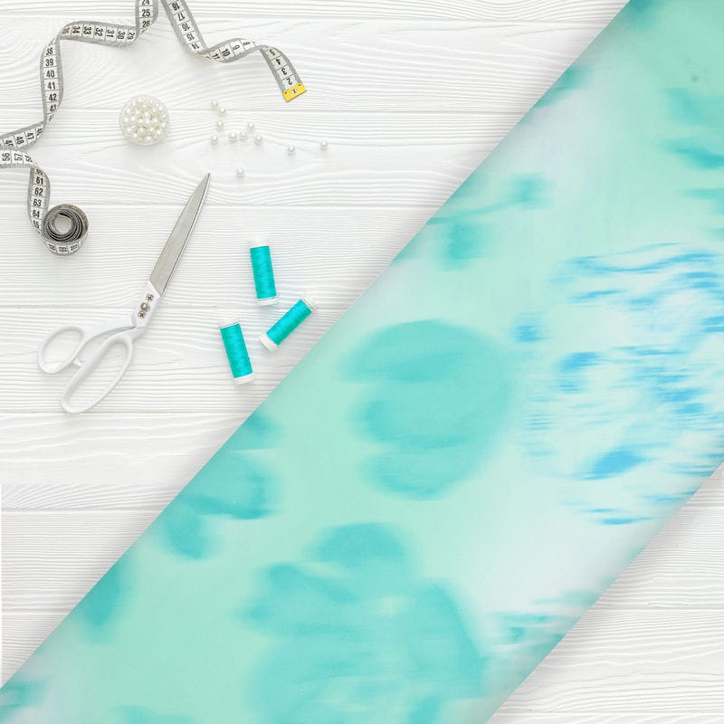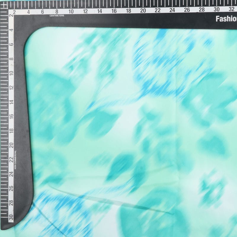 Aqua Green And Blue Abstract Pattern Digital Print Crepe Fabric