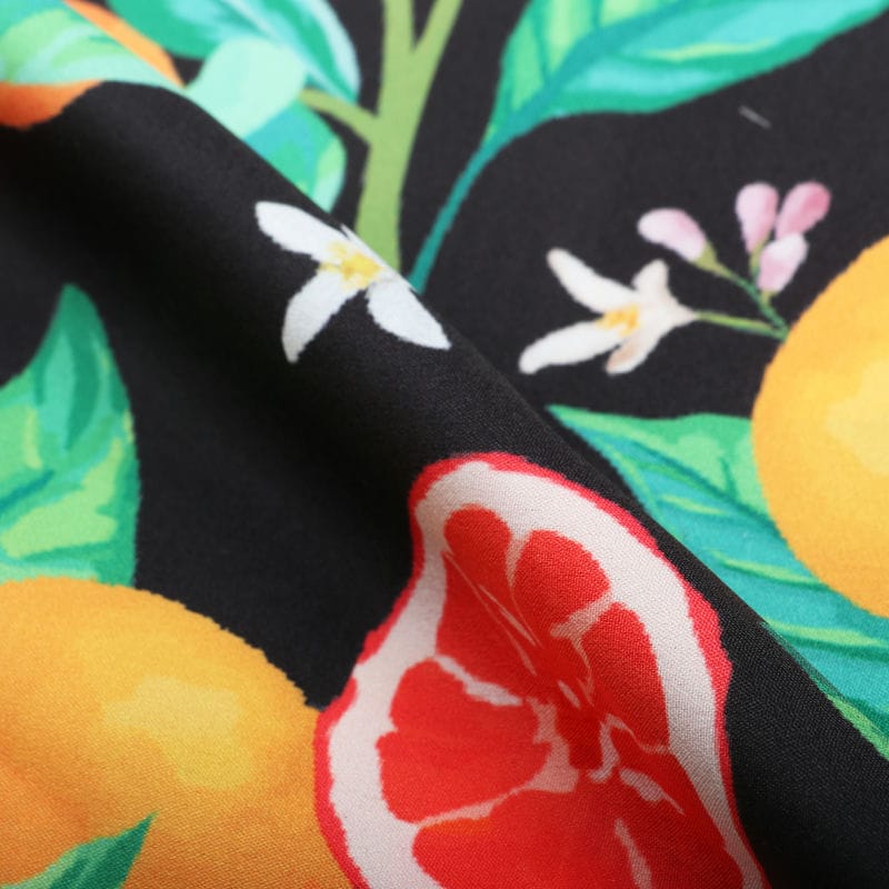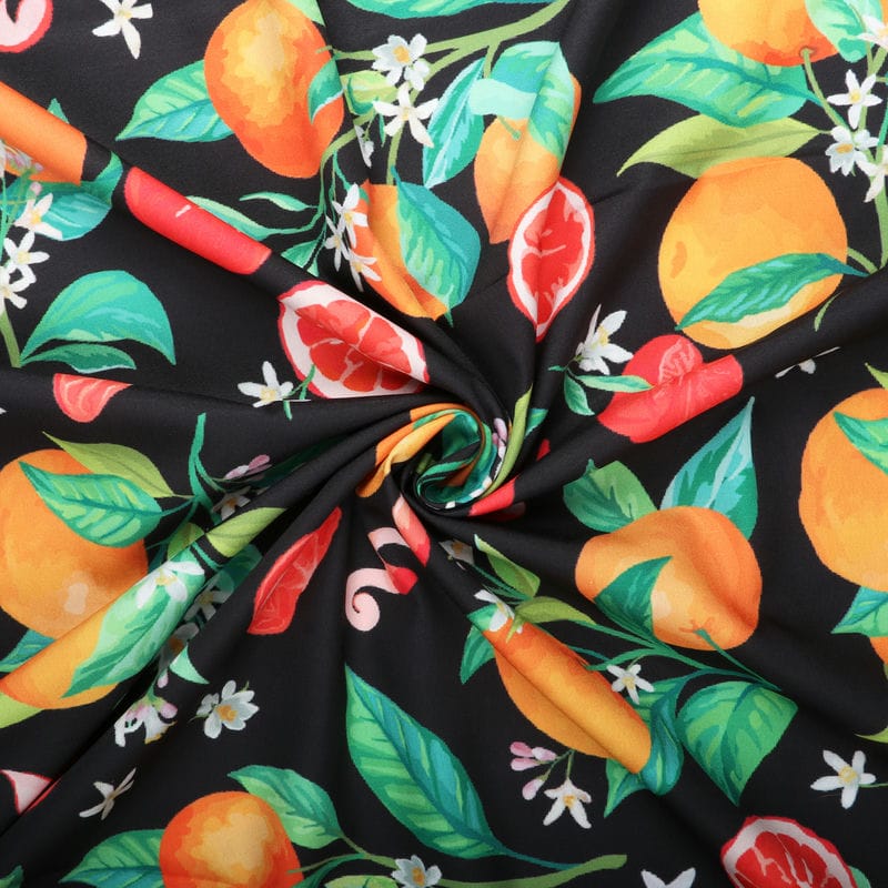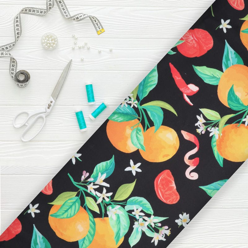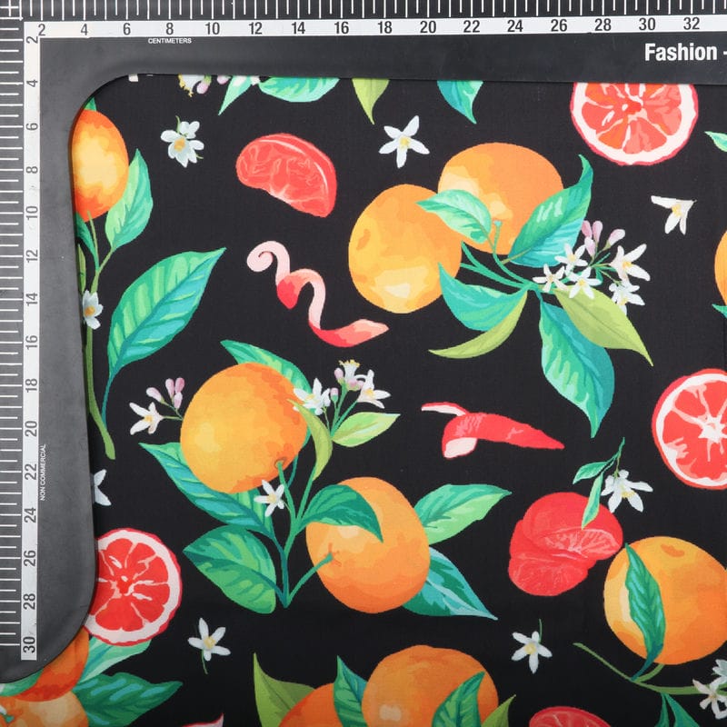 Black And Orange Fruit Pattern Digital Print Crepe Fabric