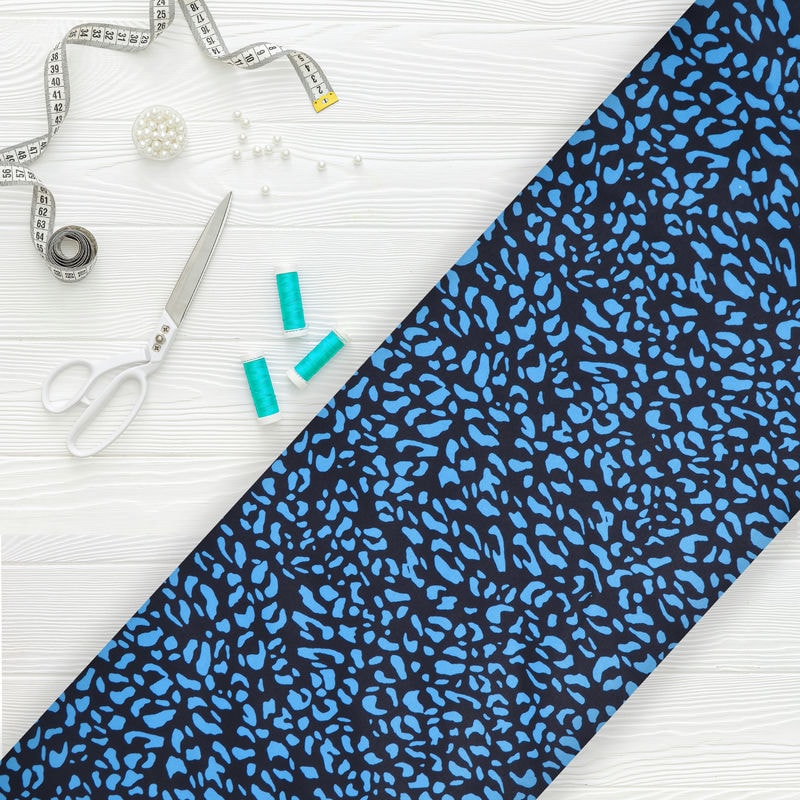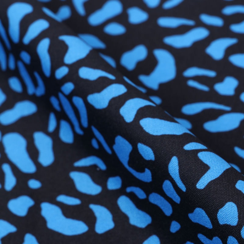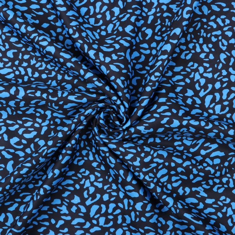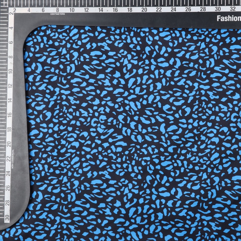 Blue And Black Abstract Pattern Digital Print Crepe Fabric