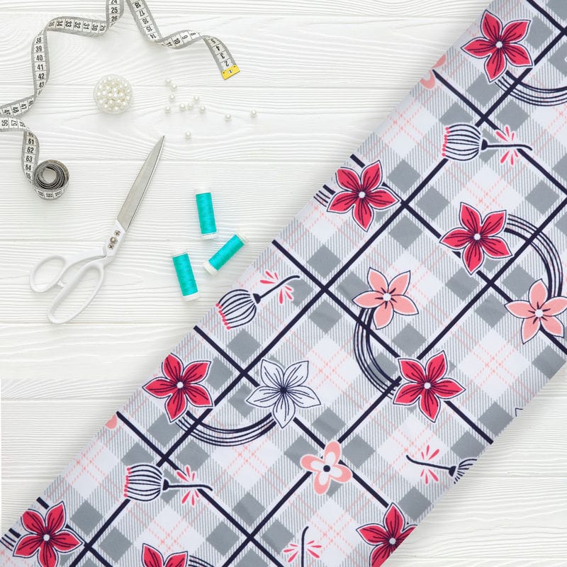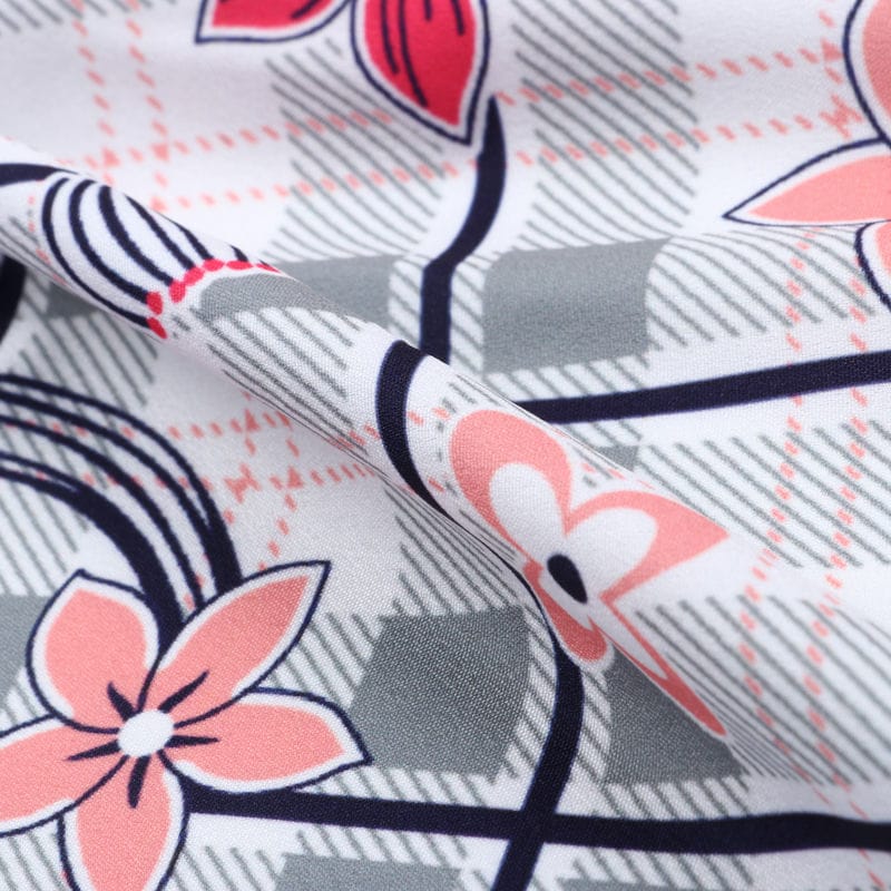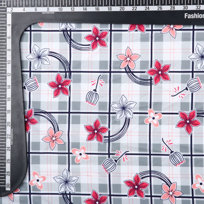 Cherry Pink And White Floral Pattern Digital Print Crepe Fabric