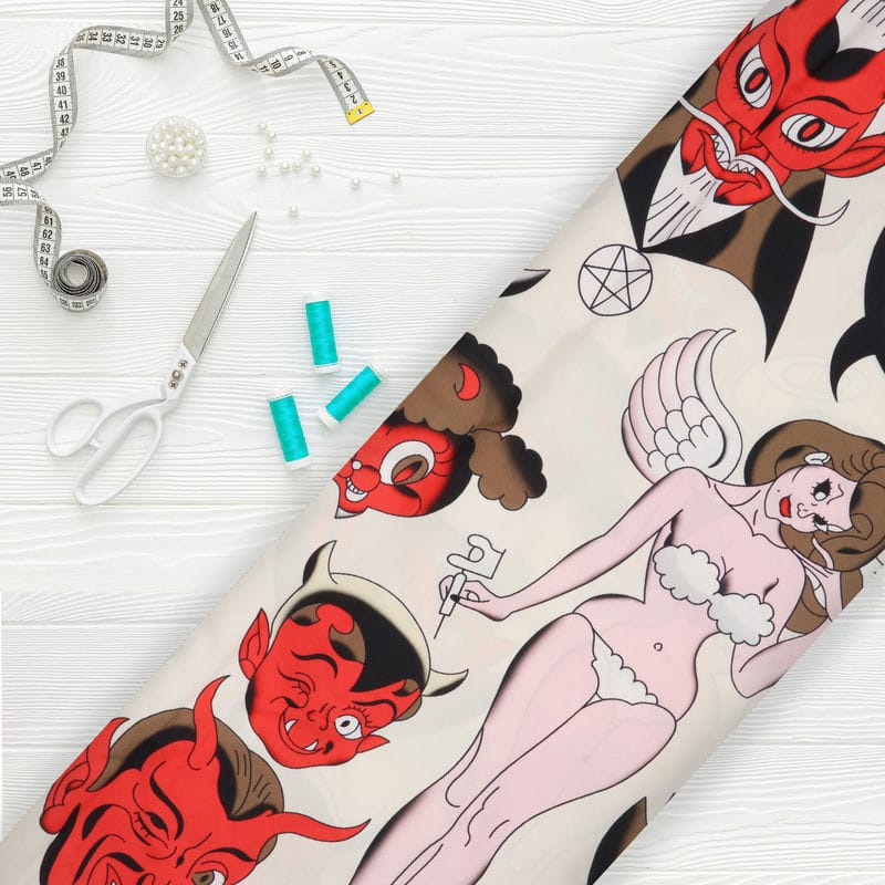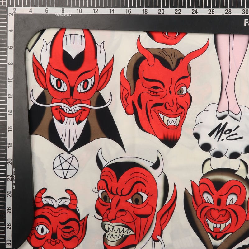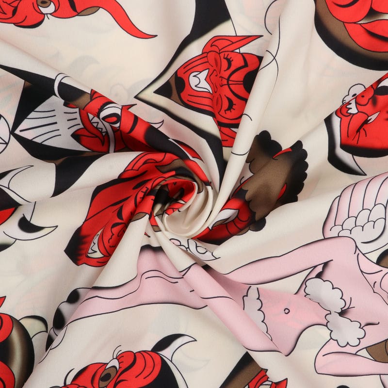 Ekru And Red Halloween Pattern Digital Print Crepe Fabric