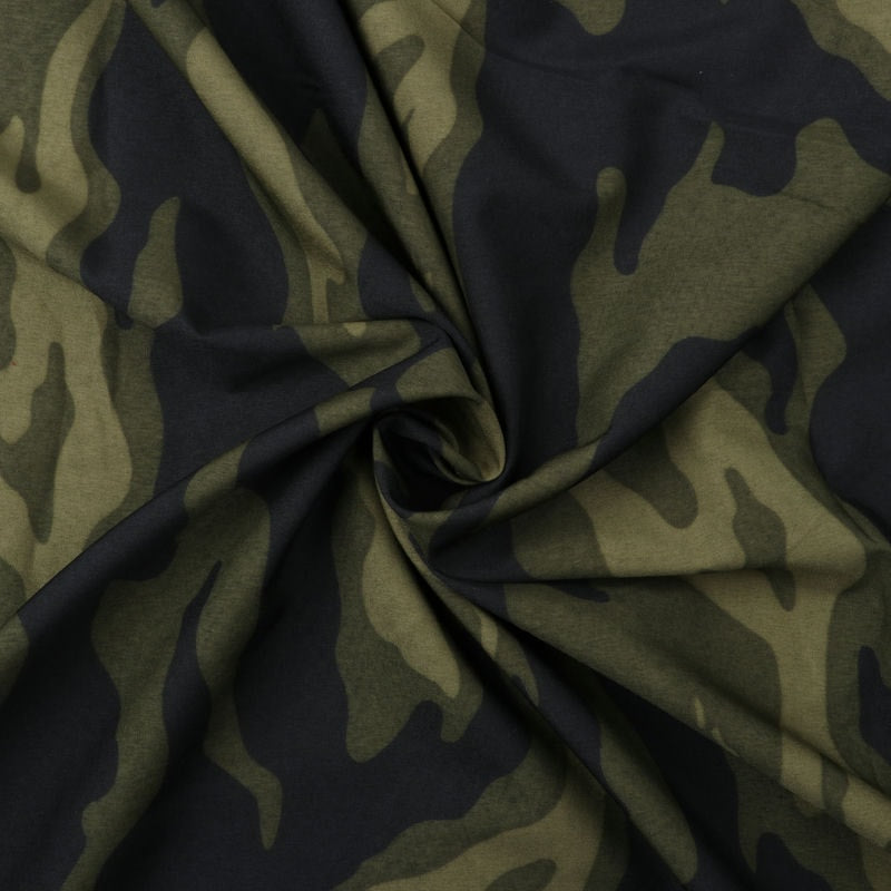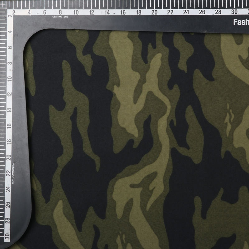Green And Black Army Pattern Screen Print Crepe Fabric