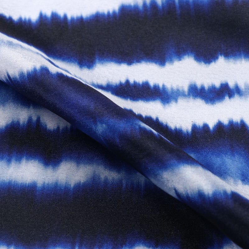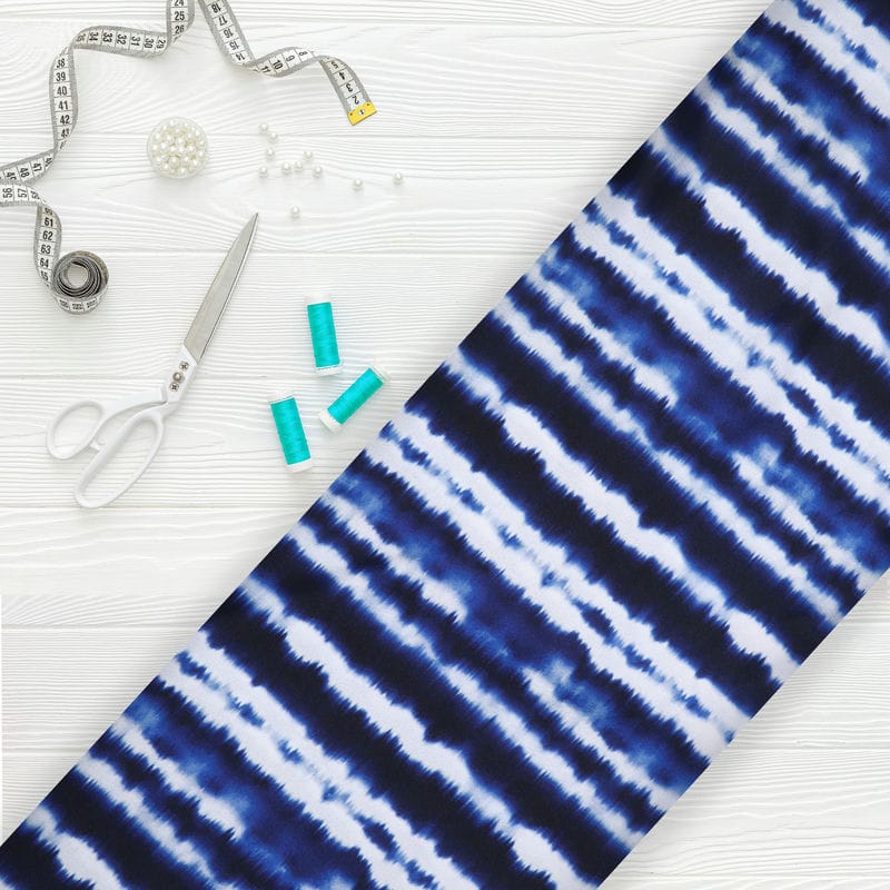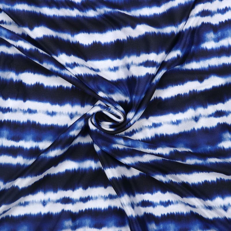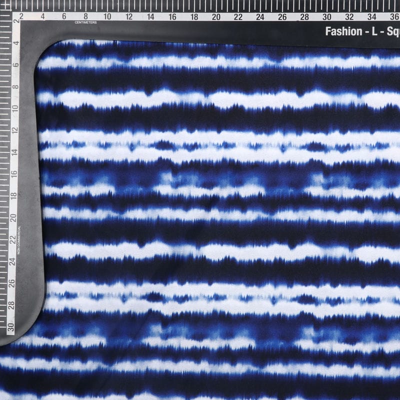 Navy Blue And White Leheriya Pattern Digital Print Silk Crepe Fabric
