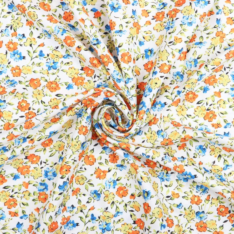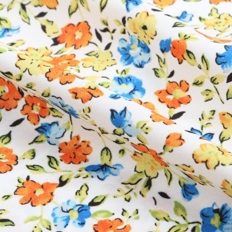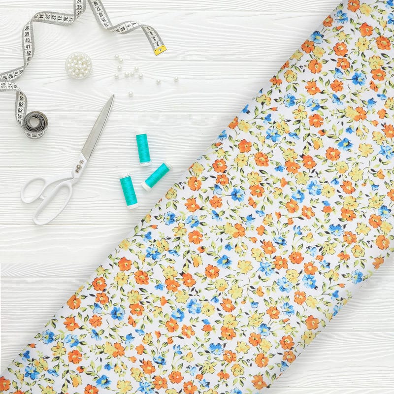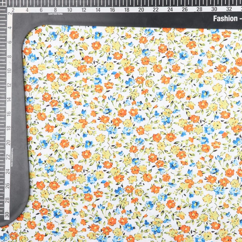 Orange And Blue Floral Pattern Digital Print Crepe Fabric