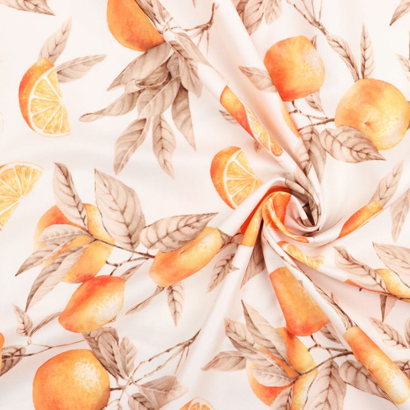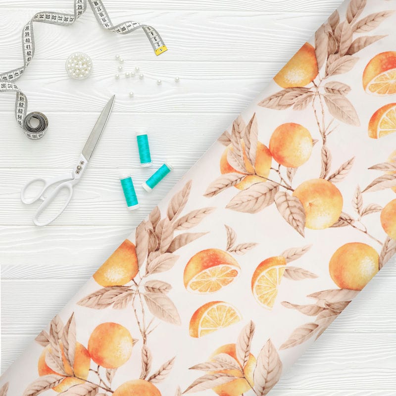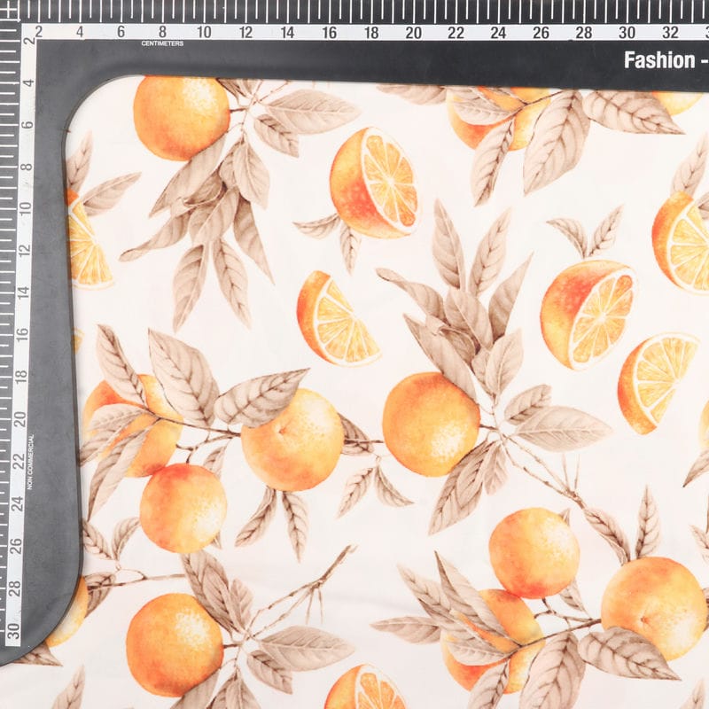 Peach And Orange Fruit Pattern Digital Print Crepe Fabric