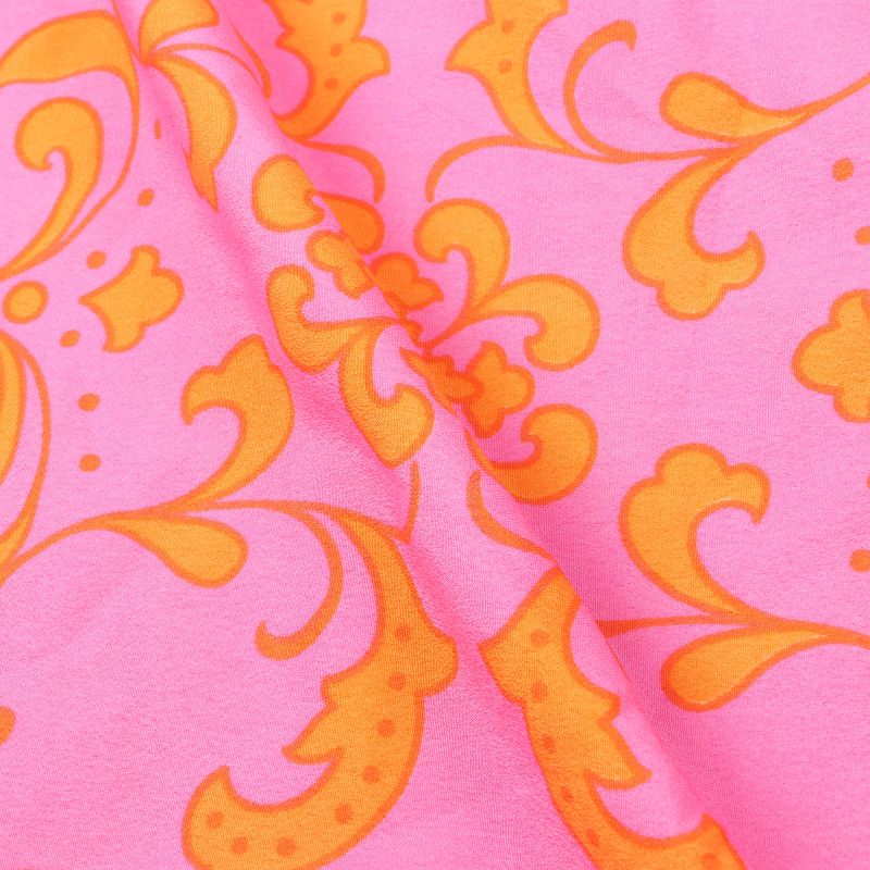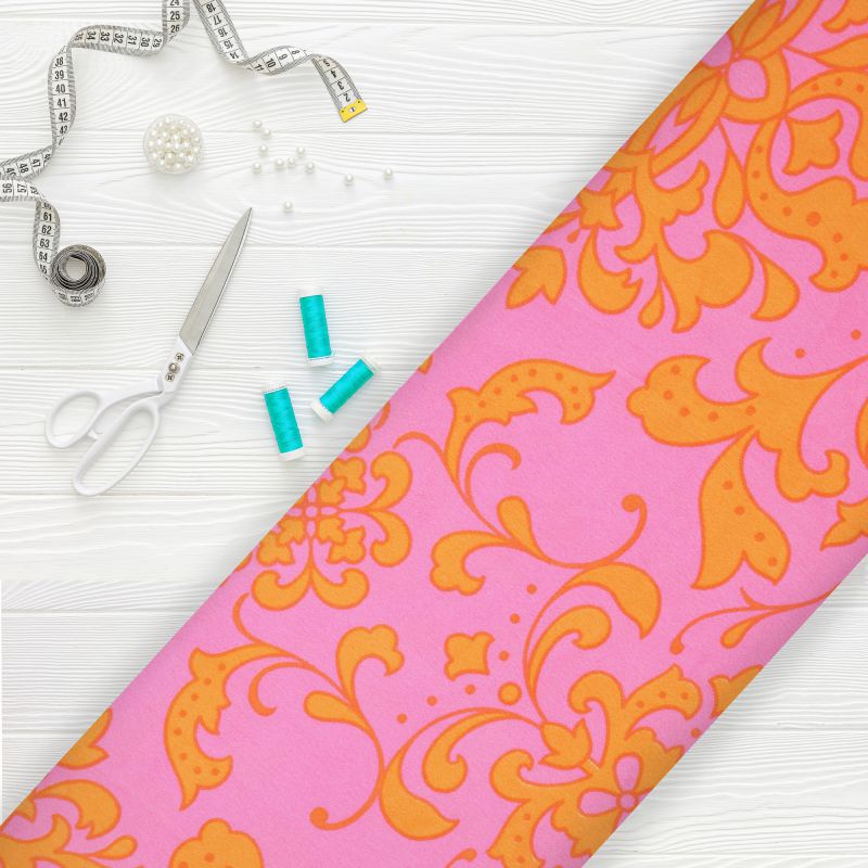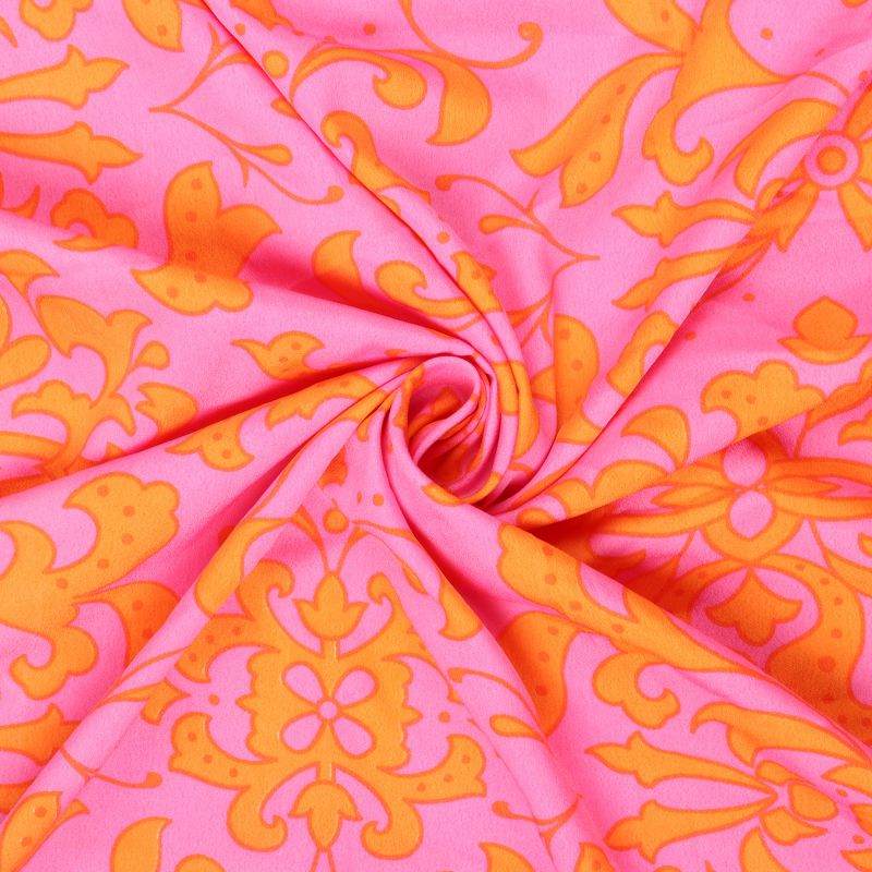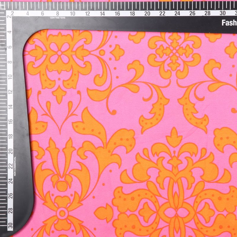 Pink And Orange Floral Pattern Screen Print Crepe Fabric (Bulk)