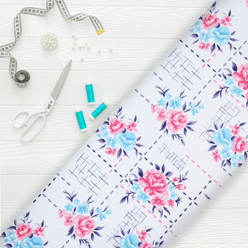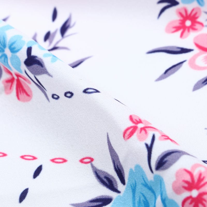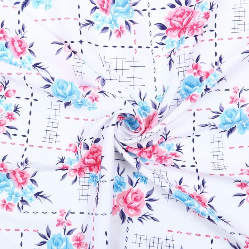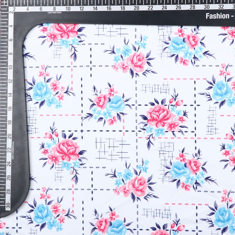 Pink And Sky Blue Floral Pattern Digital Print Crepe Fabric