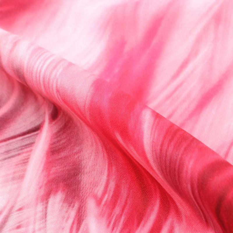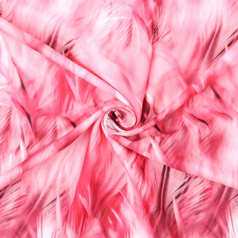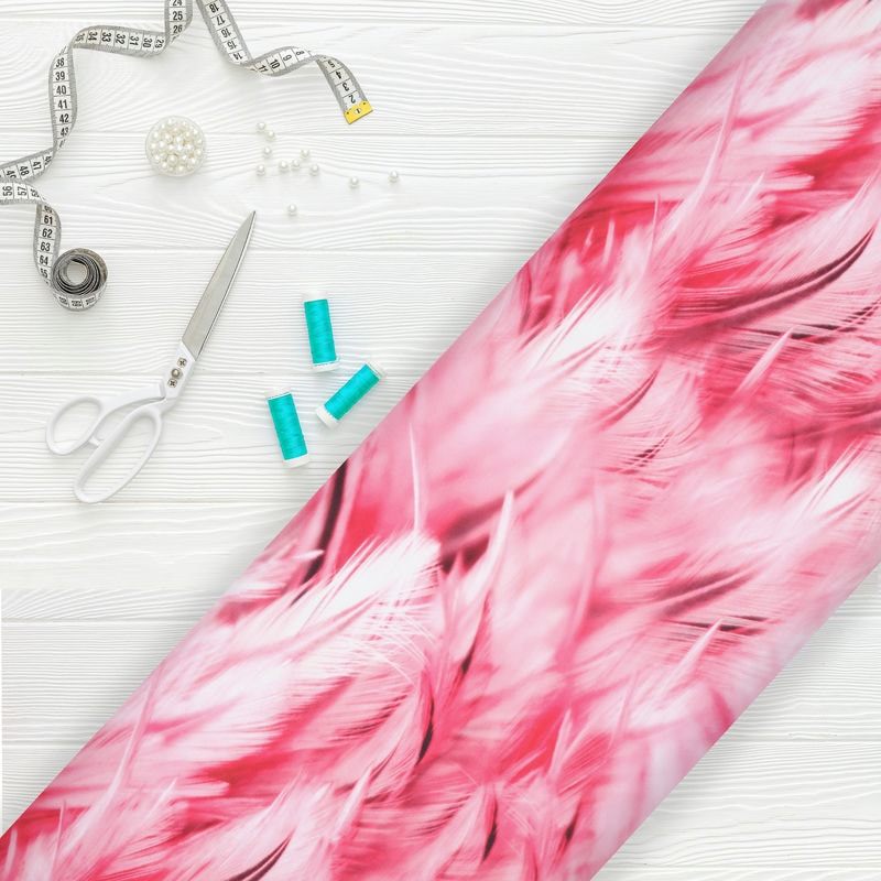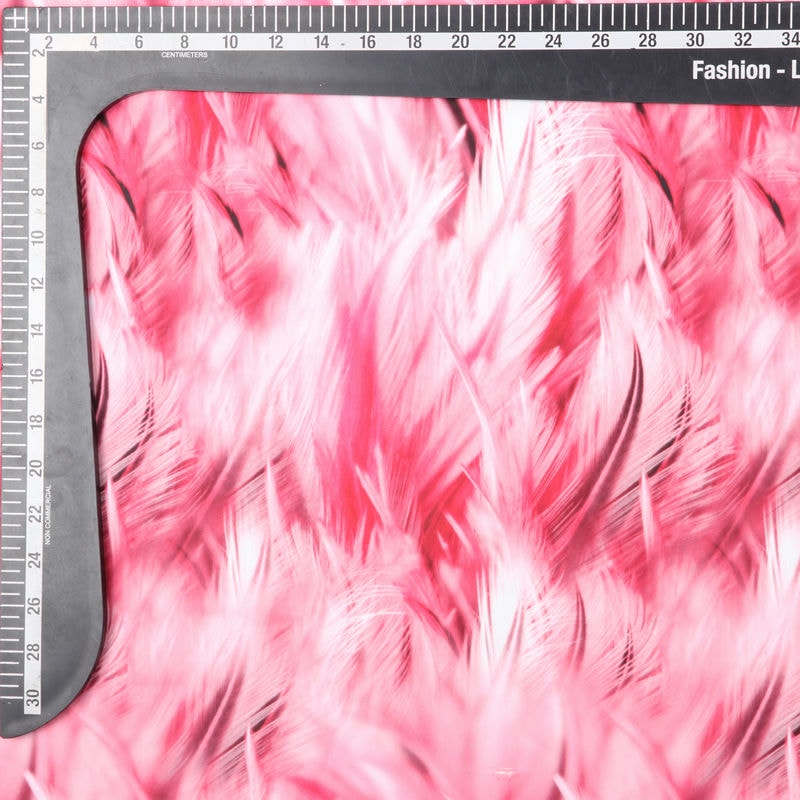 Pink And WhiteFeather Pattern Digital Print Crepe Fabric