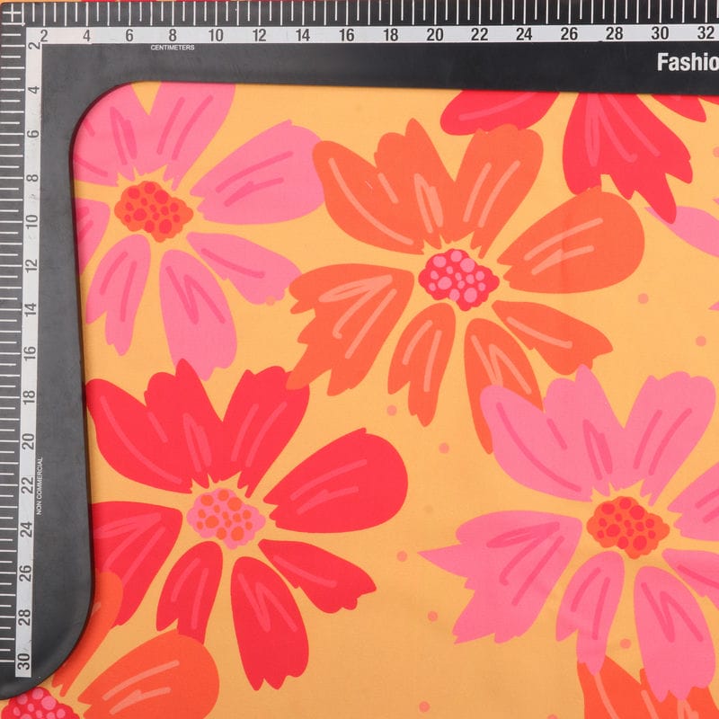 Red And Orange Floral Pattern Digital Print Crepe Fabric