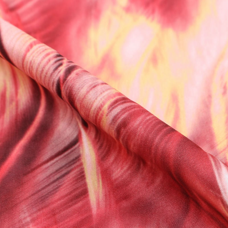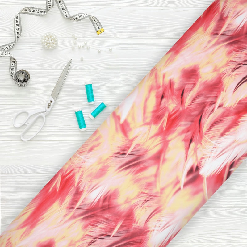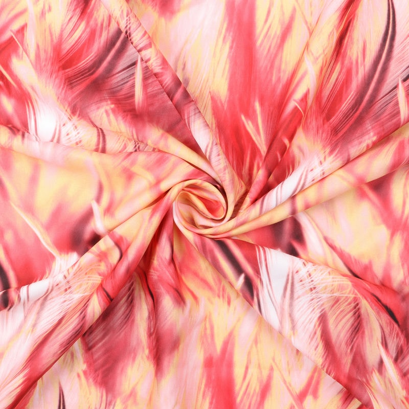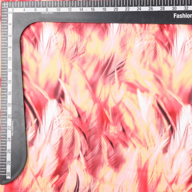 Red And White Feather Pattern Digital Print Crepe Fabric