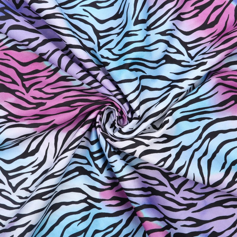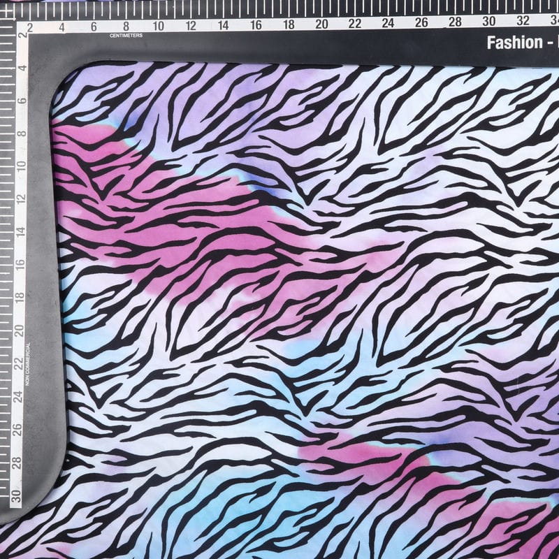 Sky Blue And Pink Animal Pattern Digital Print Crepe Fabric