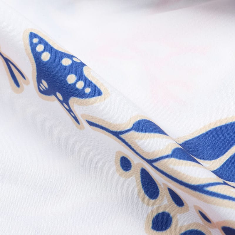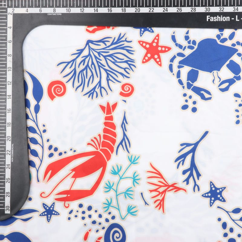 White And Blue Floral Pattern Digital Print Crepe Fabric