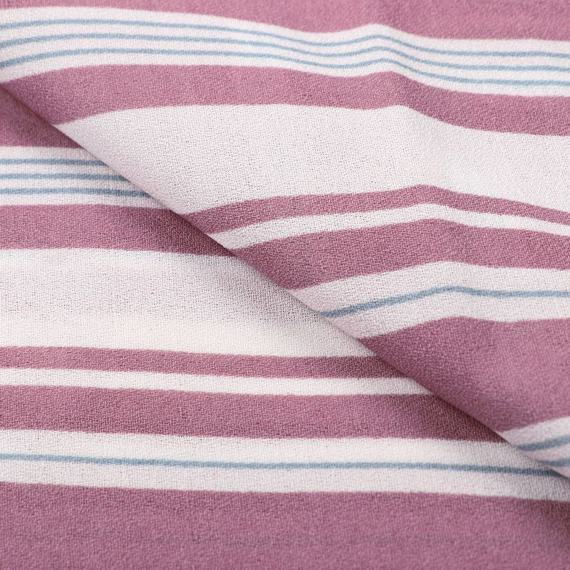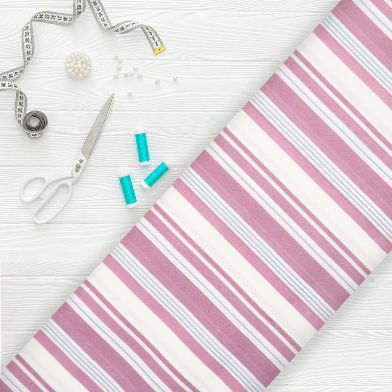 White And Dark Pink Stripes Pattern Screen Print Moss Crepe Fabric