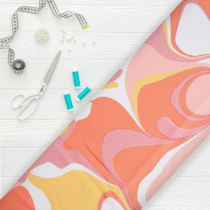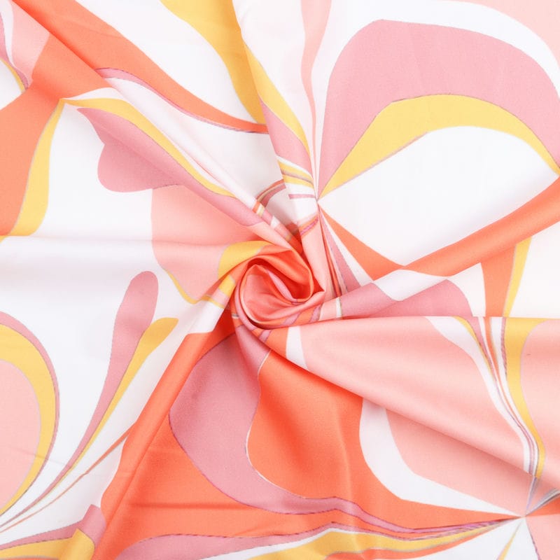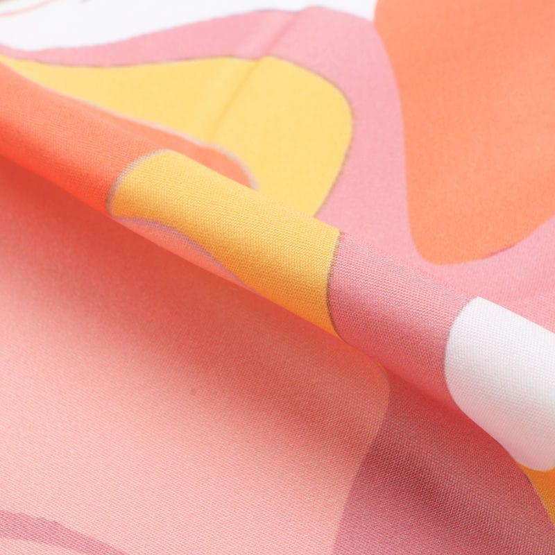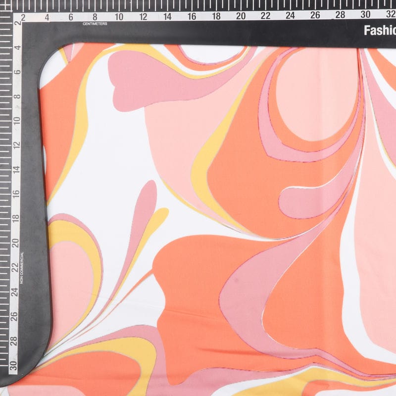 White And Orange Abstract Pattern Digital Print Crepe Fabric