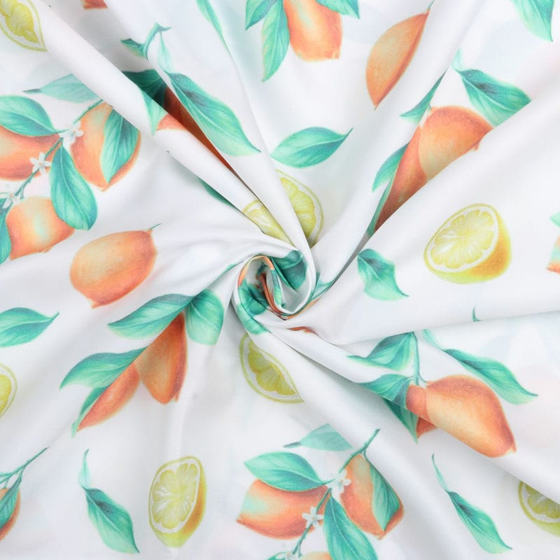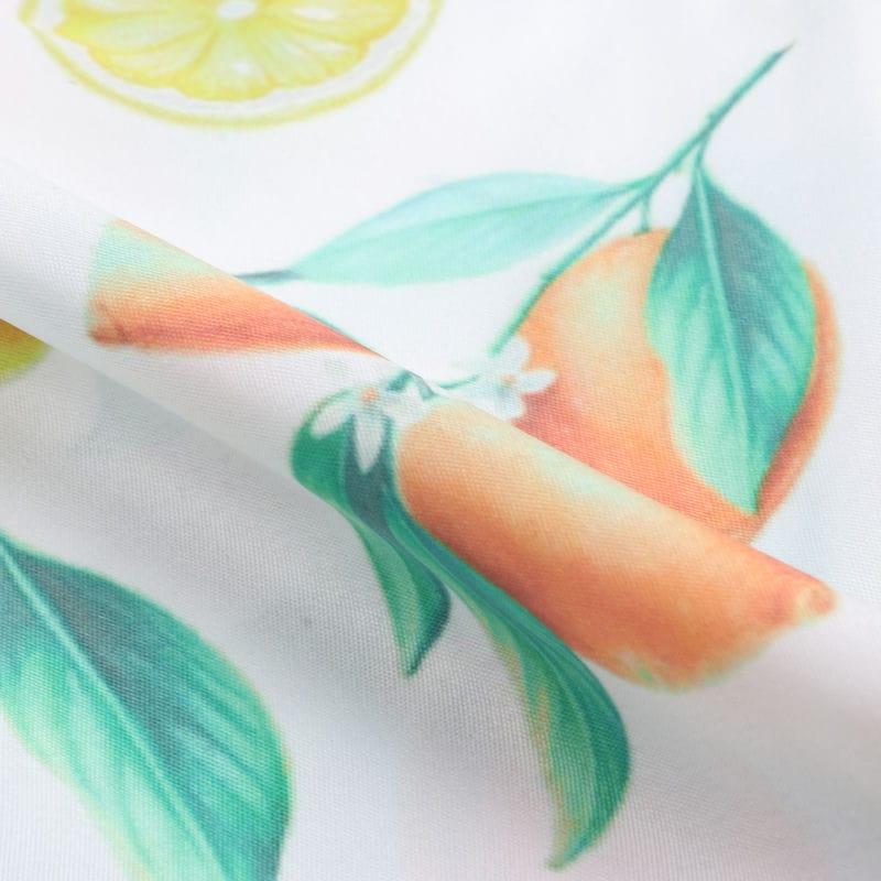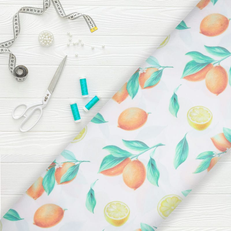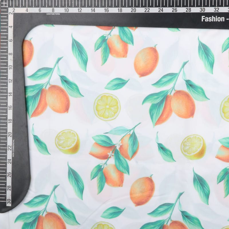 White And Orange Fruit Pattern Digital Print Crepe Fabric
