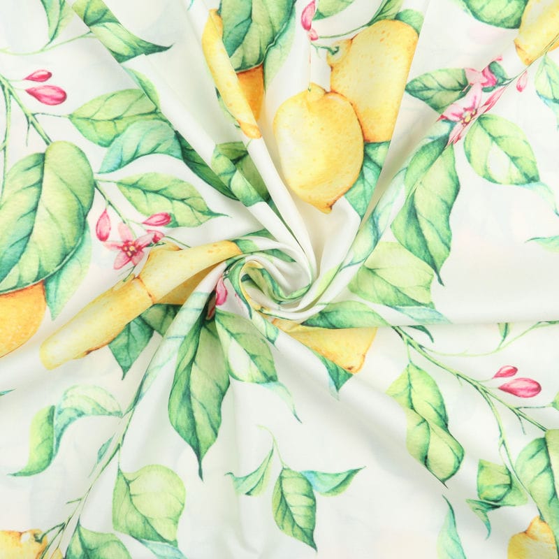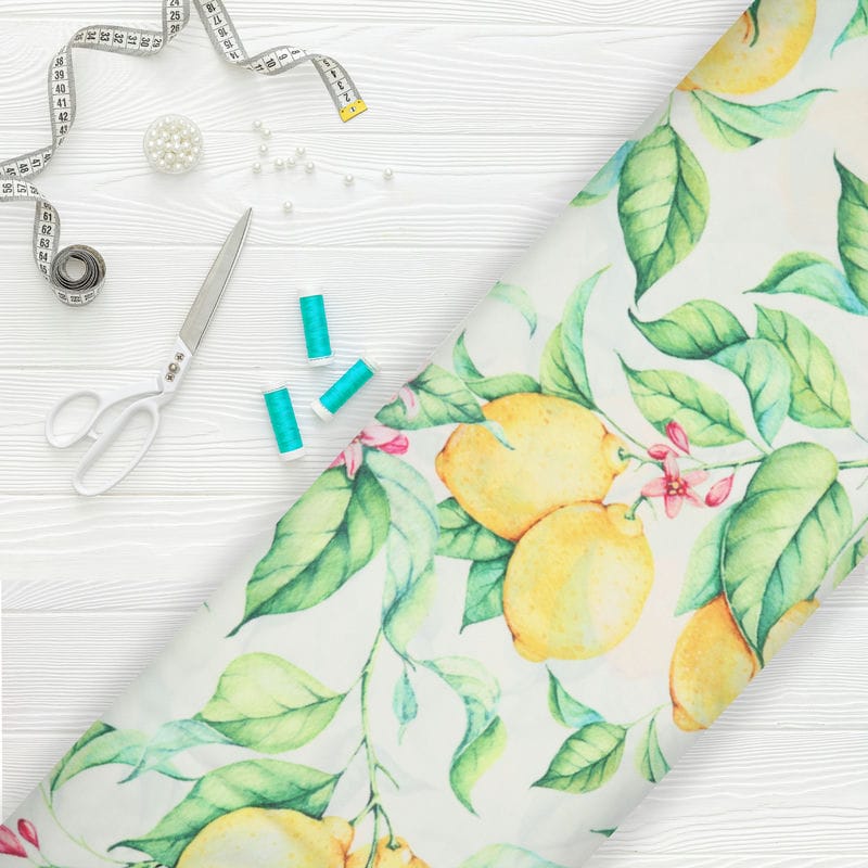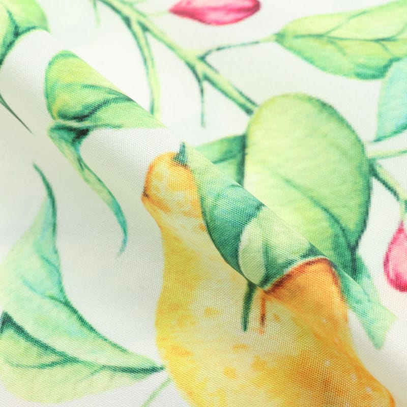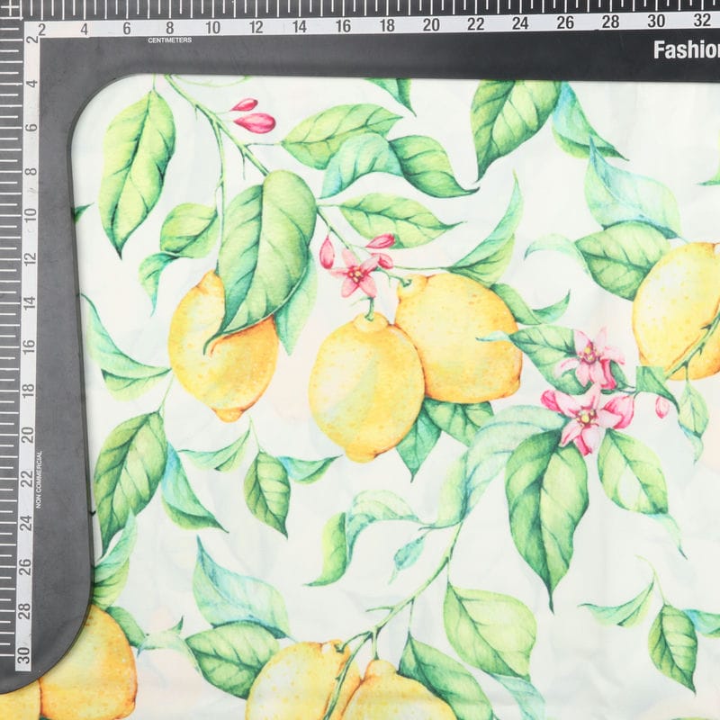 White And Yellow Fruit Pattern Digital Print Crepe Fabric
